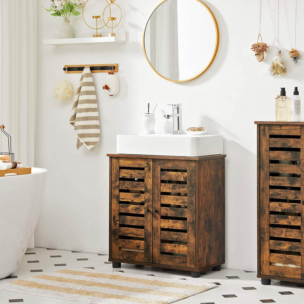 VASAGLE Rusztikus Fürdőszobai Mosdó Alatti Szekrény Zsalus Ajtókkal