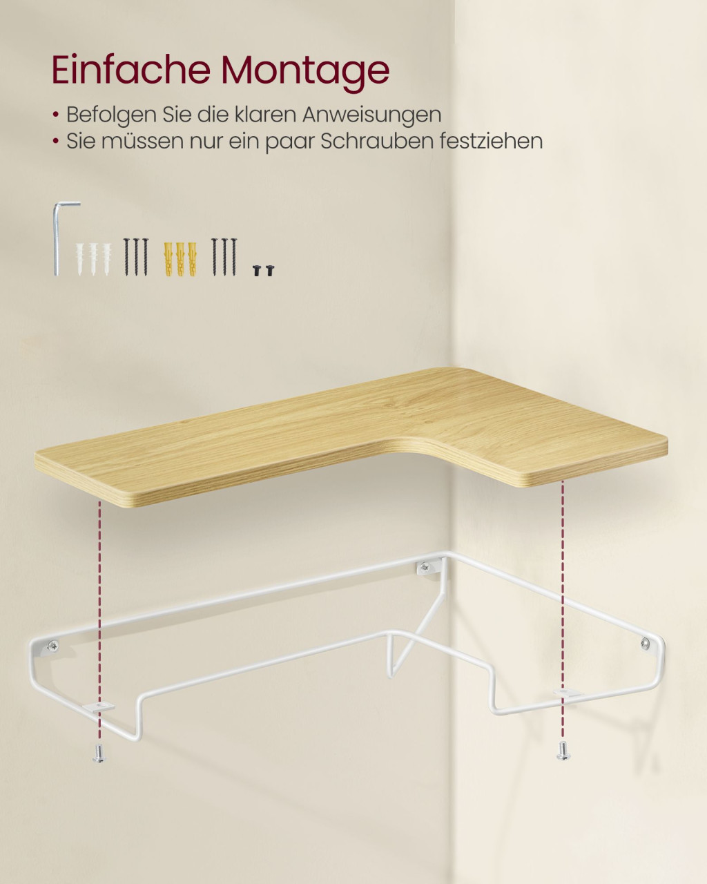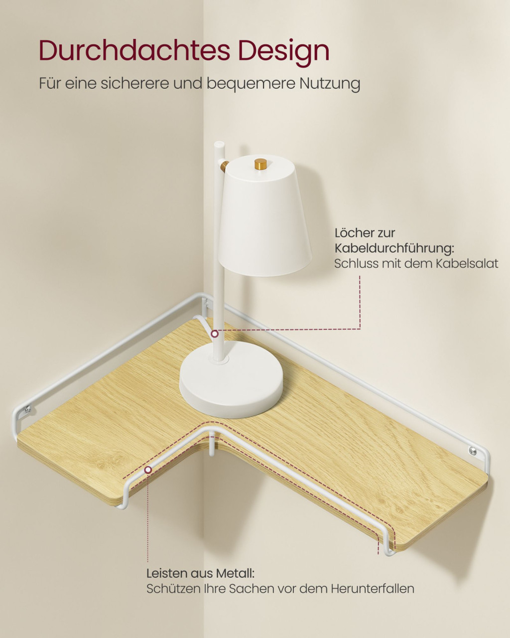 VASAGLE Sarok Lebegő Polc Szett Tölgy-Fehér Kábeltartóval