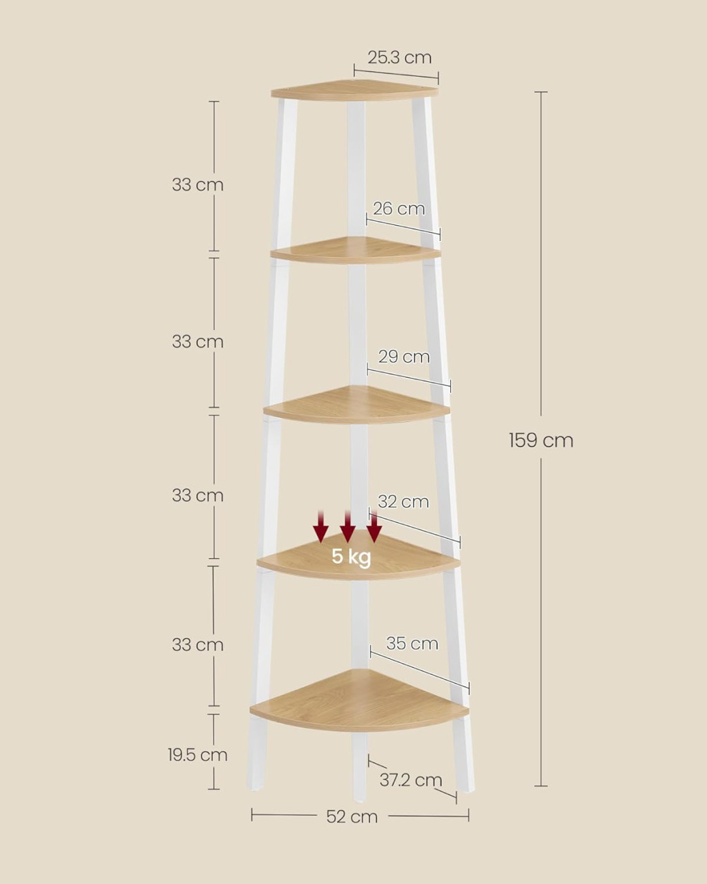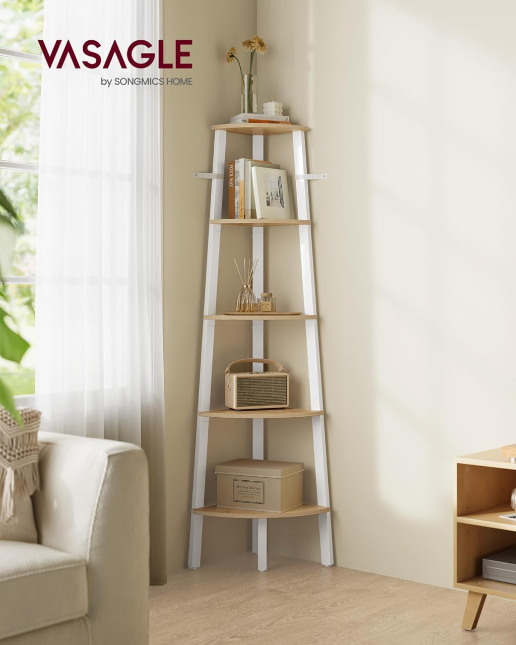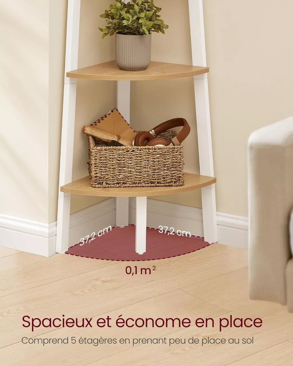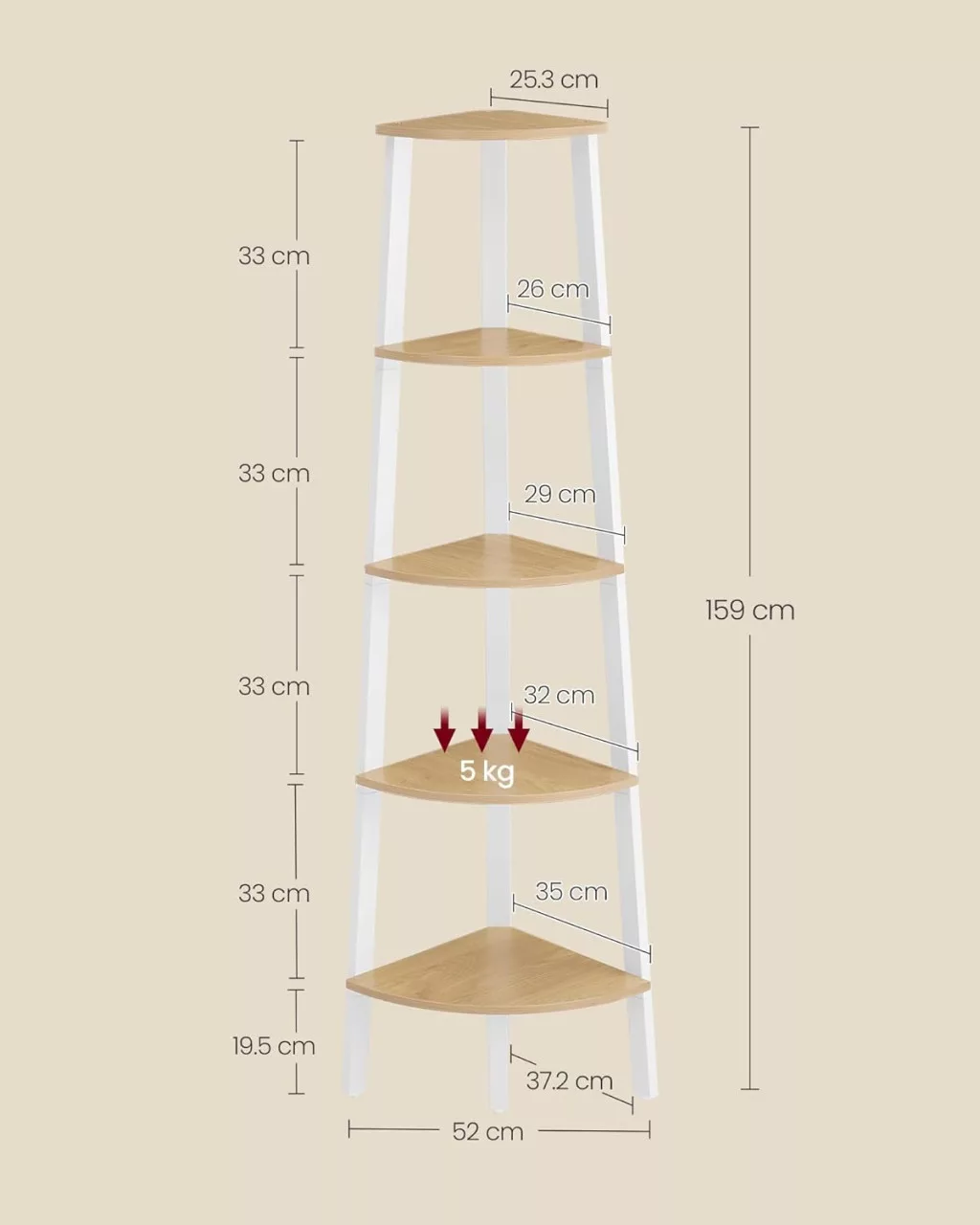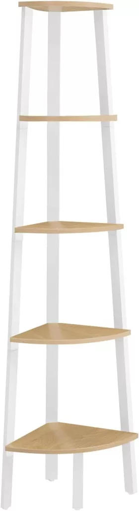 VASAGLE Sarok Polcrendszer 5 Szintes Létrás Állvány Természetes Tölgy és Matt Fehér