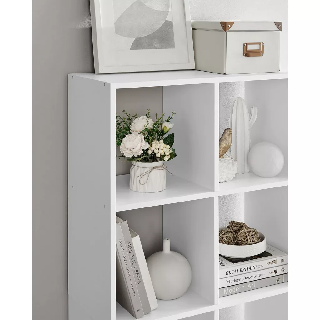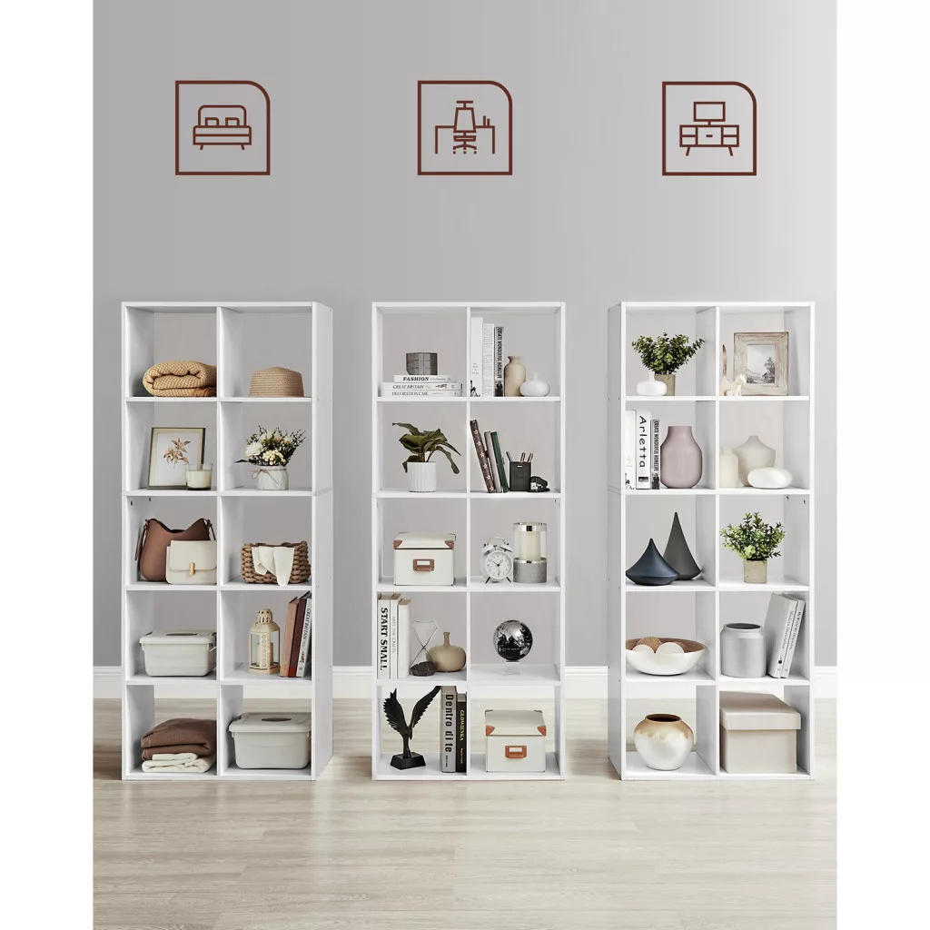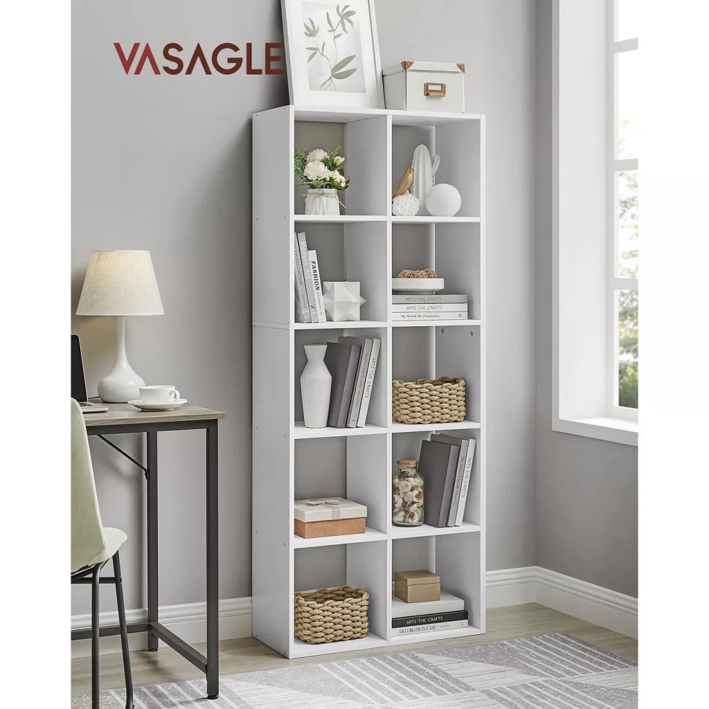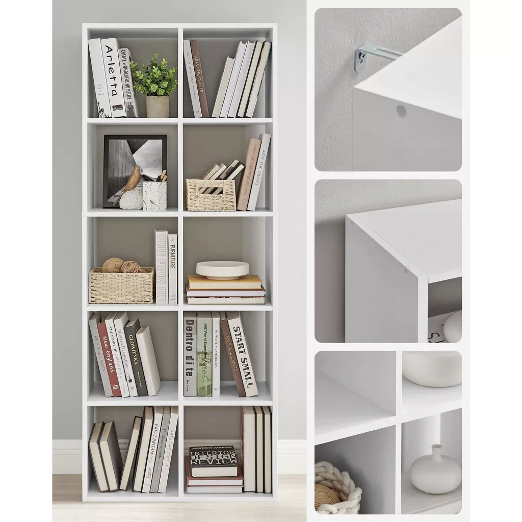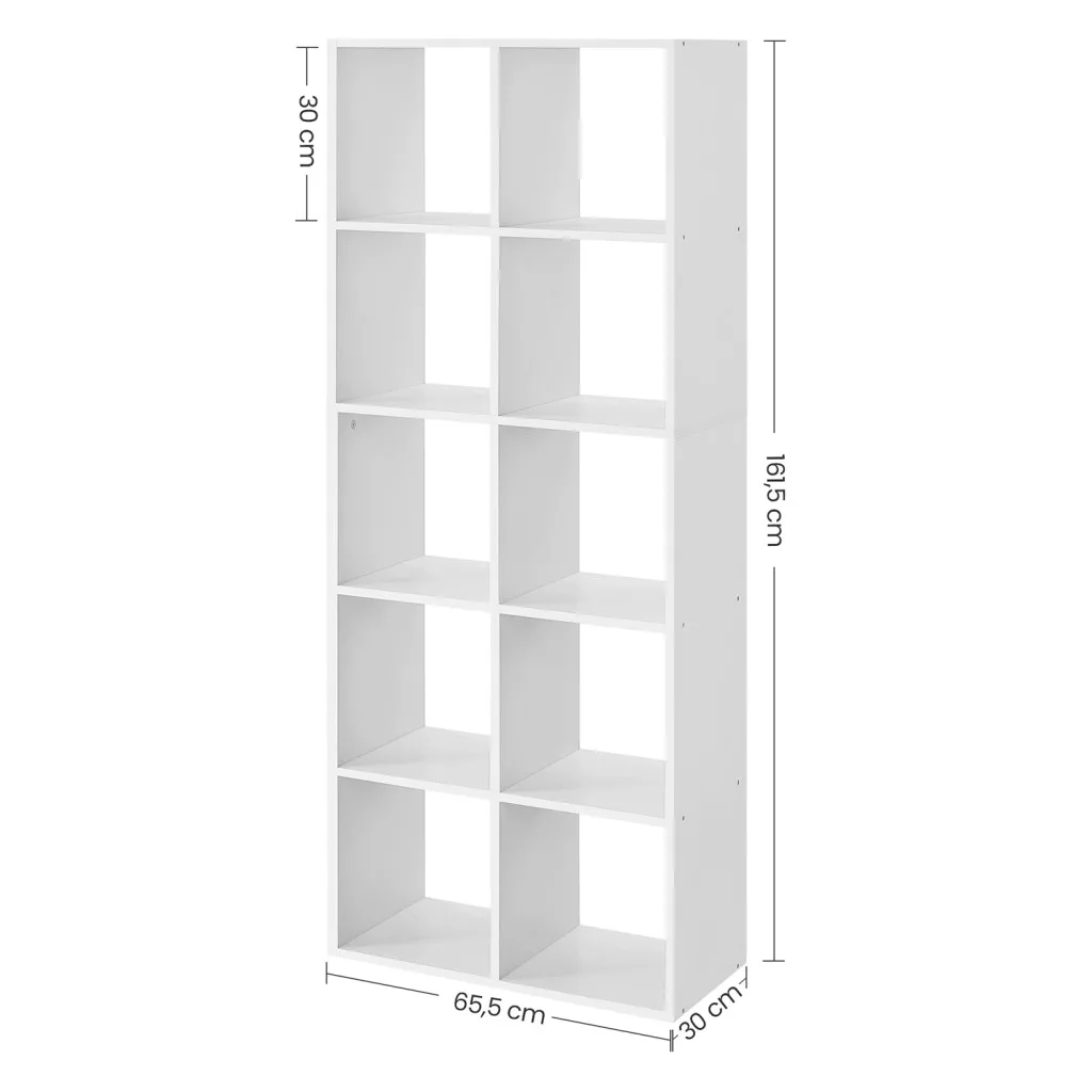 VASAGLE Skandináv Stílusú Fehér Könyvespolc 10 Rekesszel