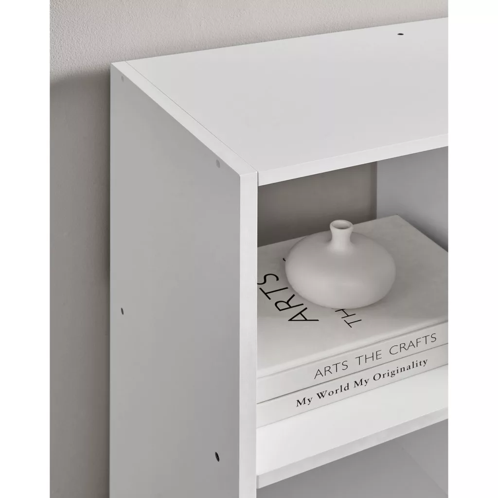 Ez a modern, fehér könyvespolc a skandináv design letisztult vonalait ötvözi a praktikus funkcionalitással. A 10 egyenlő méretű rekesz rugalmas tárolási lehetőséget biztosít könyvek, dekorációk és személyes tárgyak számára. A robusztus forgácslapból készült polcrendszer minden rekeszében akár 5 kg súlyt is elbír.