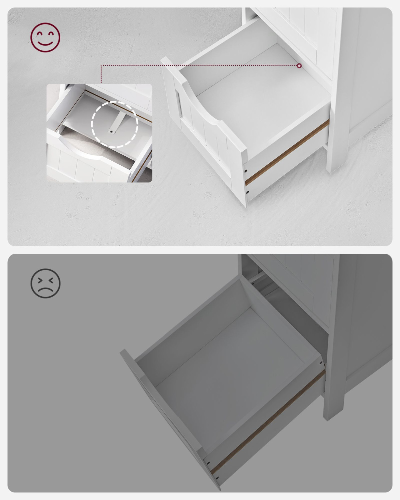 • Stabil szerkezet: Minőségi MDF anyagból készült, dőlésgátlóval ellátva