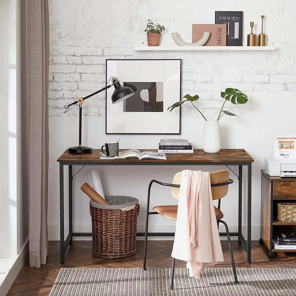 Ez a VASAGLE íróasztal a tökéletes választás azoknak, akik kis térben szeretnének kialakítani egy stílusos munkasarkot. A vintage barna asztallap és a fekete acélváz kombinációja modern ipari megjelenést kölcsönöz, miközben a megerősített váz szerkezet maximális stabilitást biztosít.