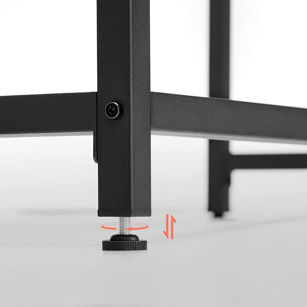 Az asztal kompakt mérete ellenére bőséges munkafelületet kínál laptopnak, monitornak és irodai kellékeknek egyaránt. A megerősített acélváz és keresztmerevítők 50 kg teherbírást garantálnak, így minden szükséges eszköz biztonságosan elhelyezhető rajta.