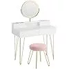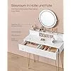VASAGLE Sminkasztal LED Világítással és Ülőkével Mattfehér-Arany