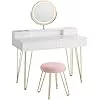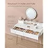 VASAGLE Sminkasztal Világítással és Ülőkével Mattfehér-Arany