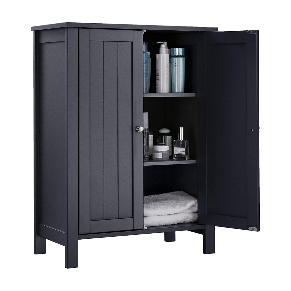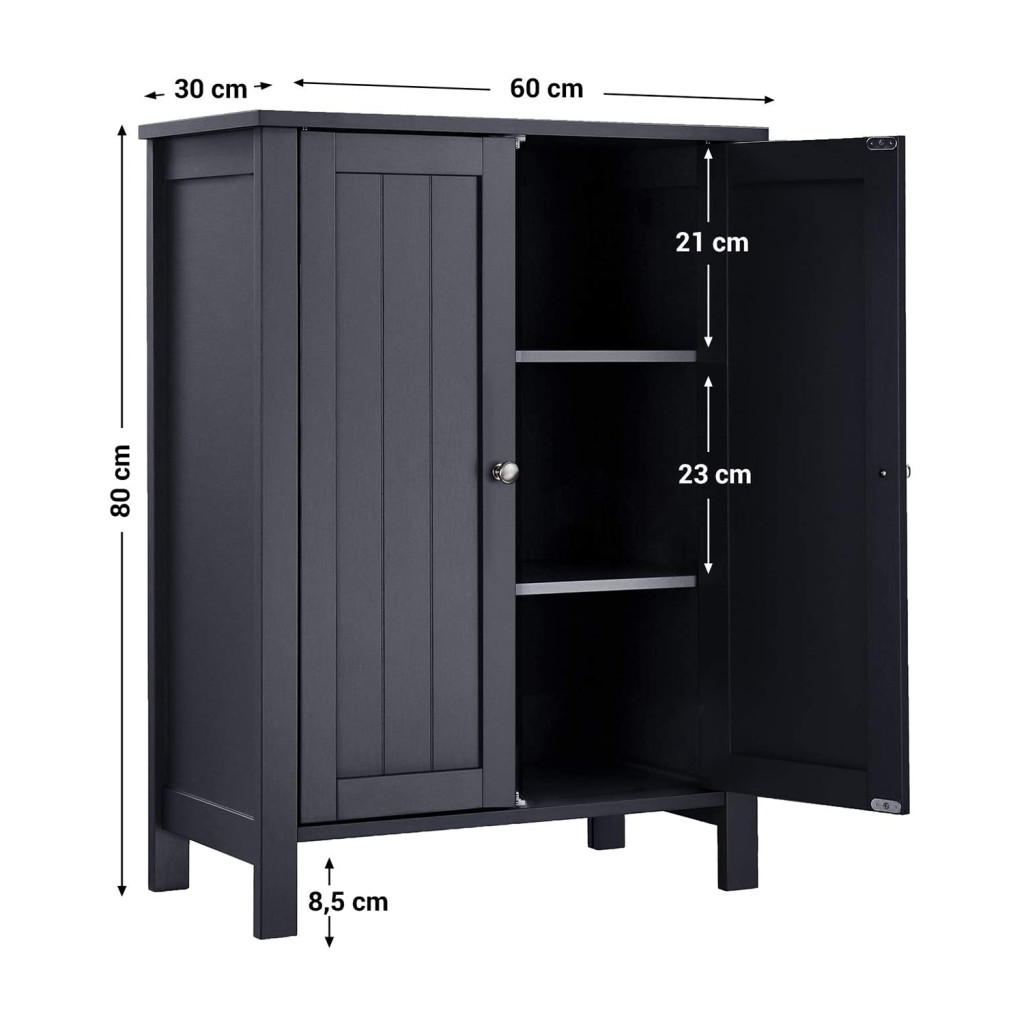VASAGLE Szabadonálló Fürdőszobai Szekrény MDF Szürke Állítható Polcokkal