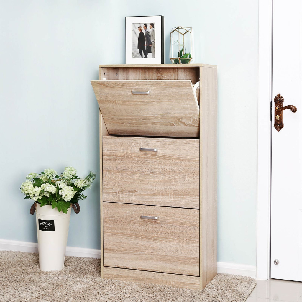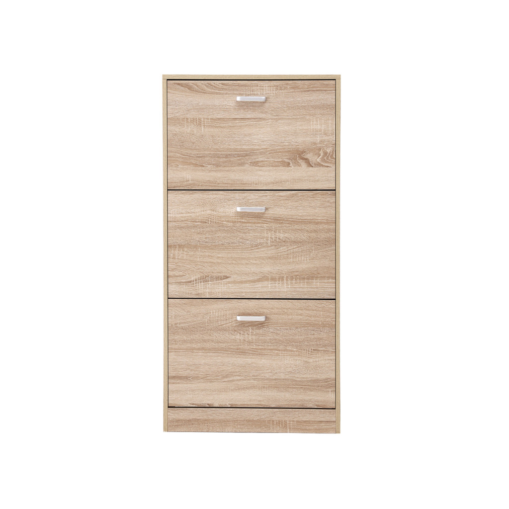 VASAGLE Természetes Fa Cipősszekrény 3 Ajtós Tárolórendszer