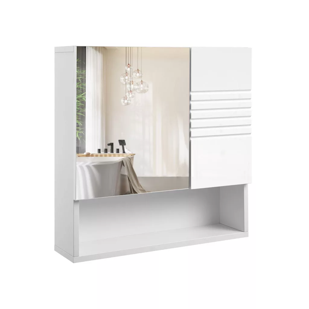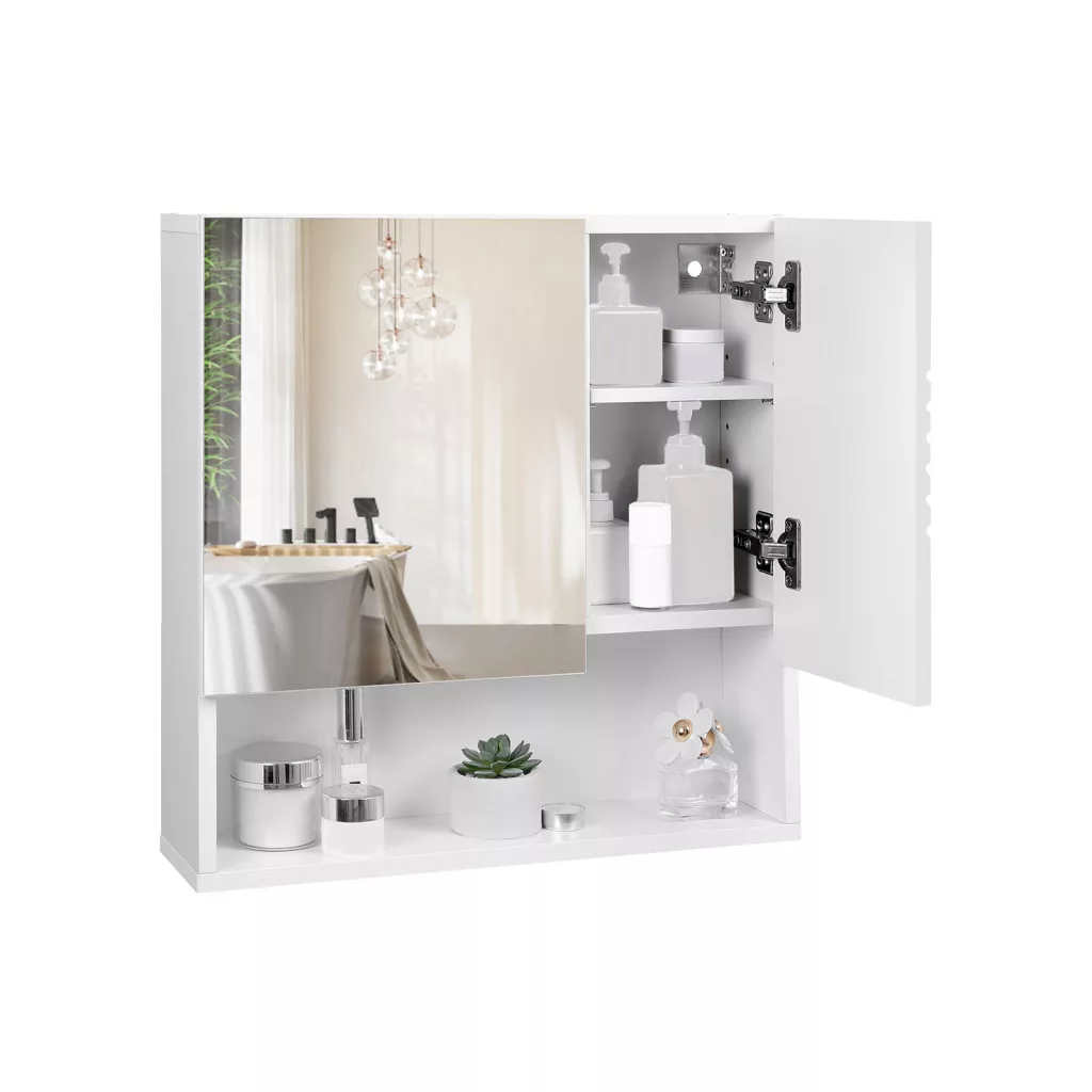 VASAGLE Tükrös Fürdőszobai Fali Szekrény Állítható Polcokkal Fehér