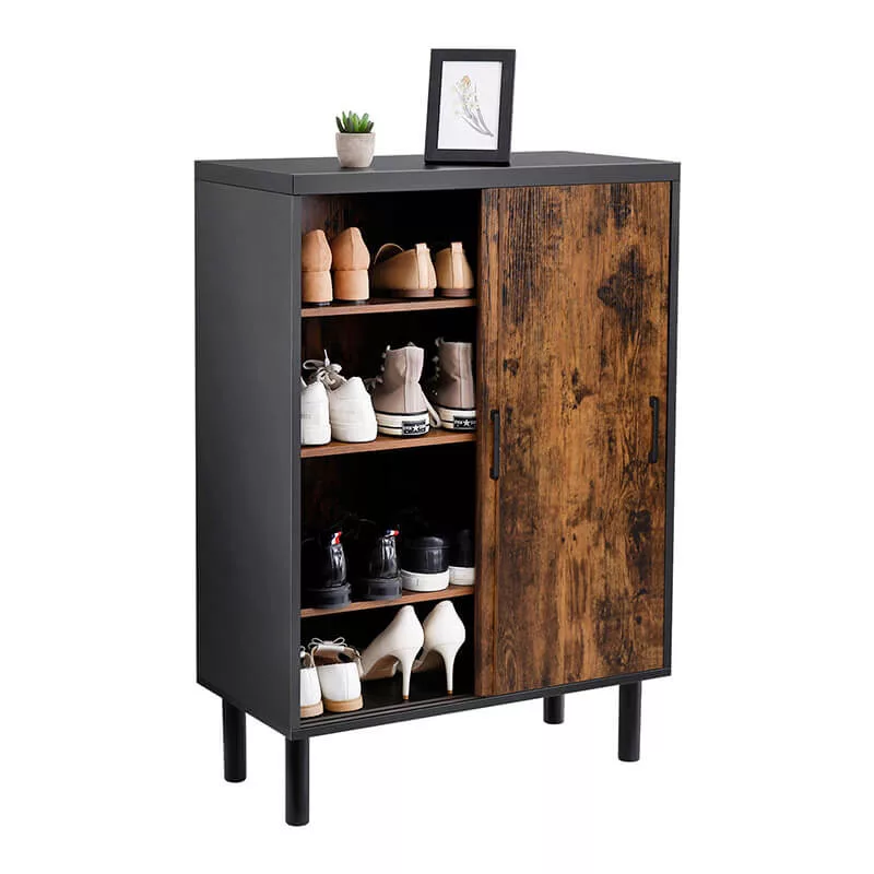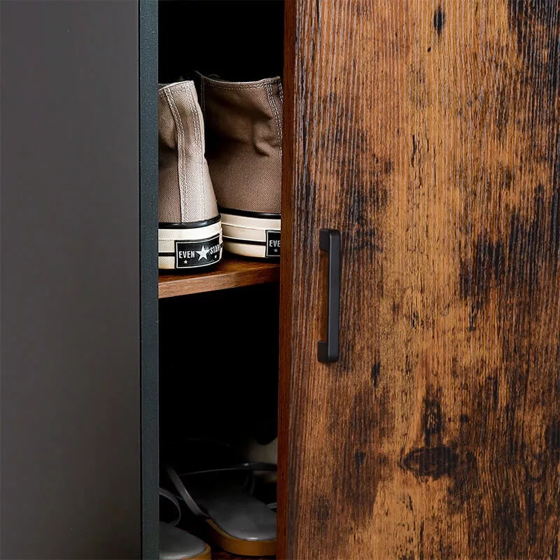 Modern és rusztikus stílusú tárolószekrény 3 állítható polccal, tökéletes előszobai cipők és kiegészítők rendszerezett tárolására.