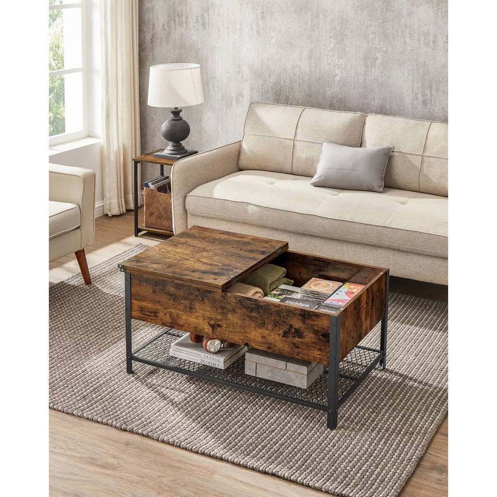 VASAGLE Vintage Dohányzóasztal Felnyitható Tetővel és Tárolóval Rusztikus Barna