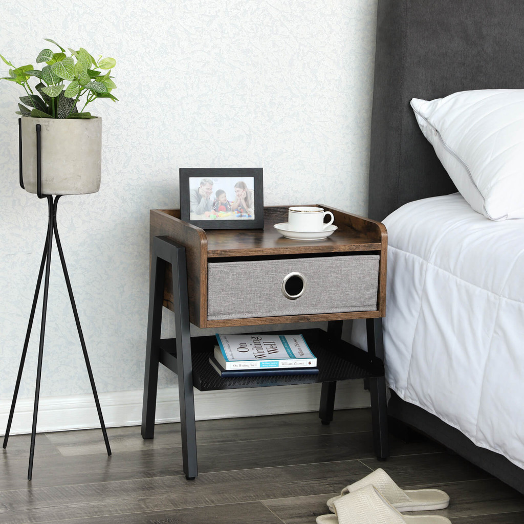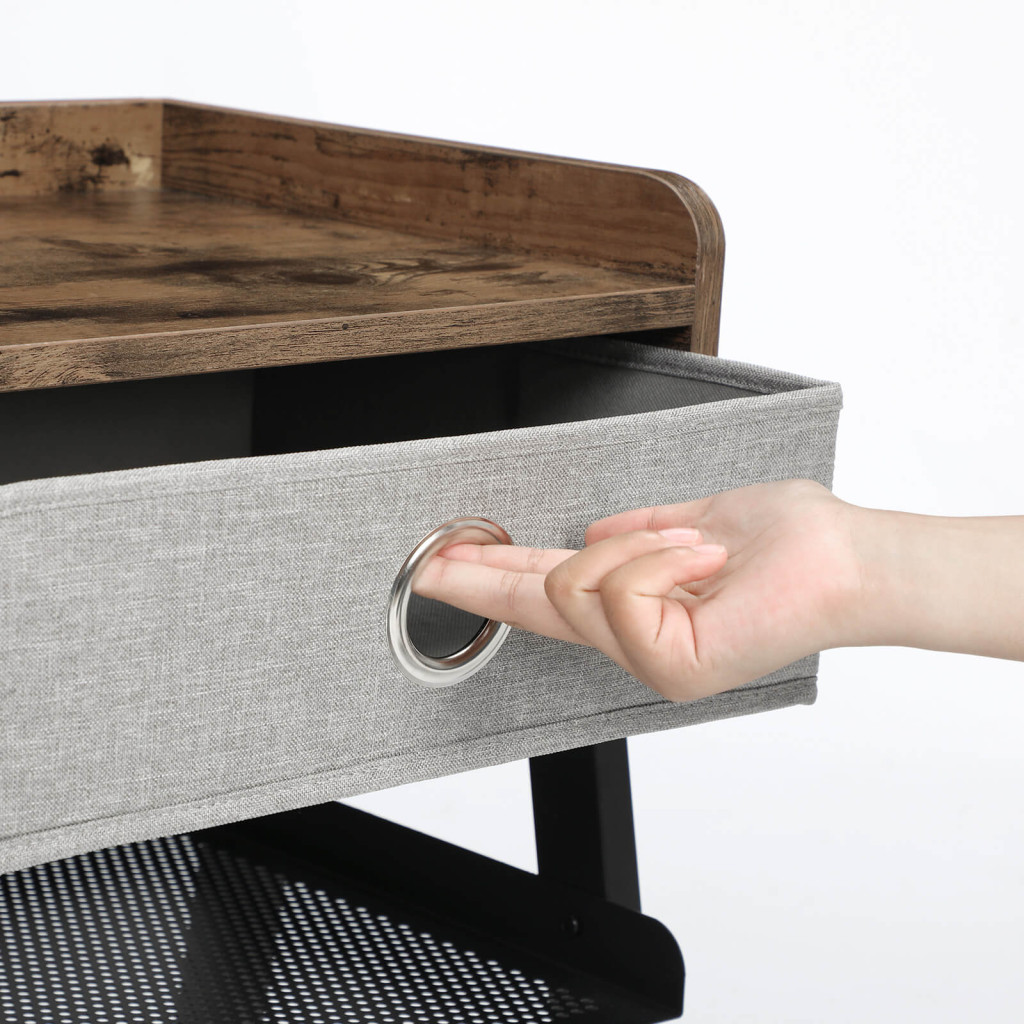 VASAGLE Vintage Éjjeliszekrény Textil Fiókkal és Fém Polccal