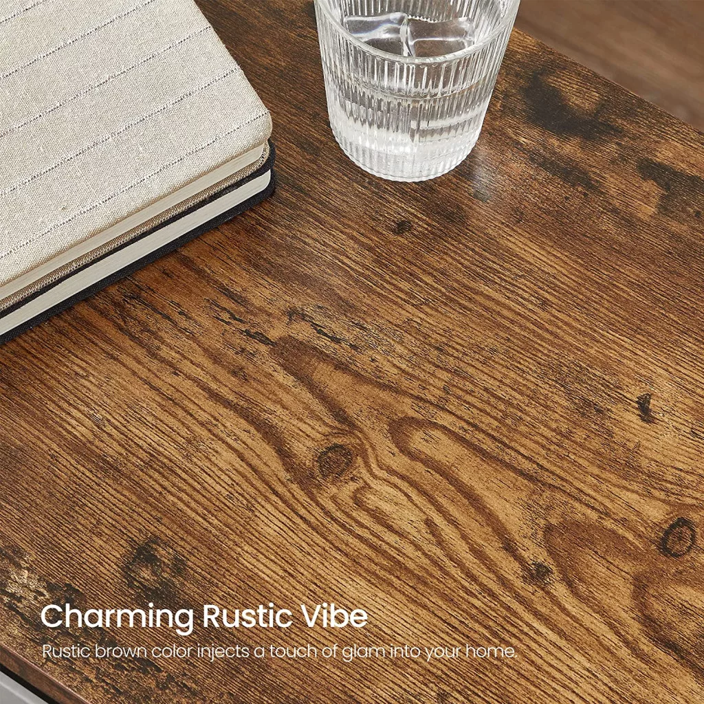 Ez a VASAGLE kisasztal tökéletesen ötvözi a rusztikus fa és az ipari fém elemeket egy modern és funkcionális bútordarabban. A masszív fém váz és a vintage hatású fa felület stabil és stílusos kiegészítőt biztosít bármely helyiségben.