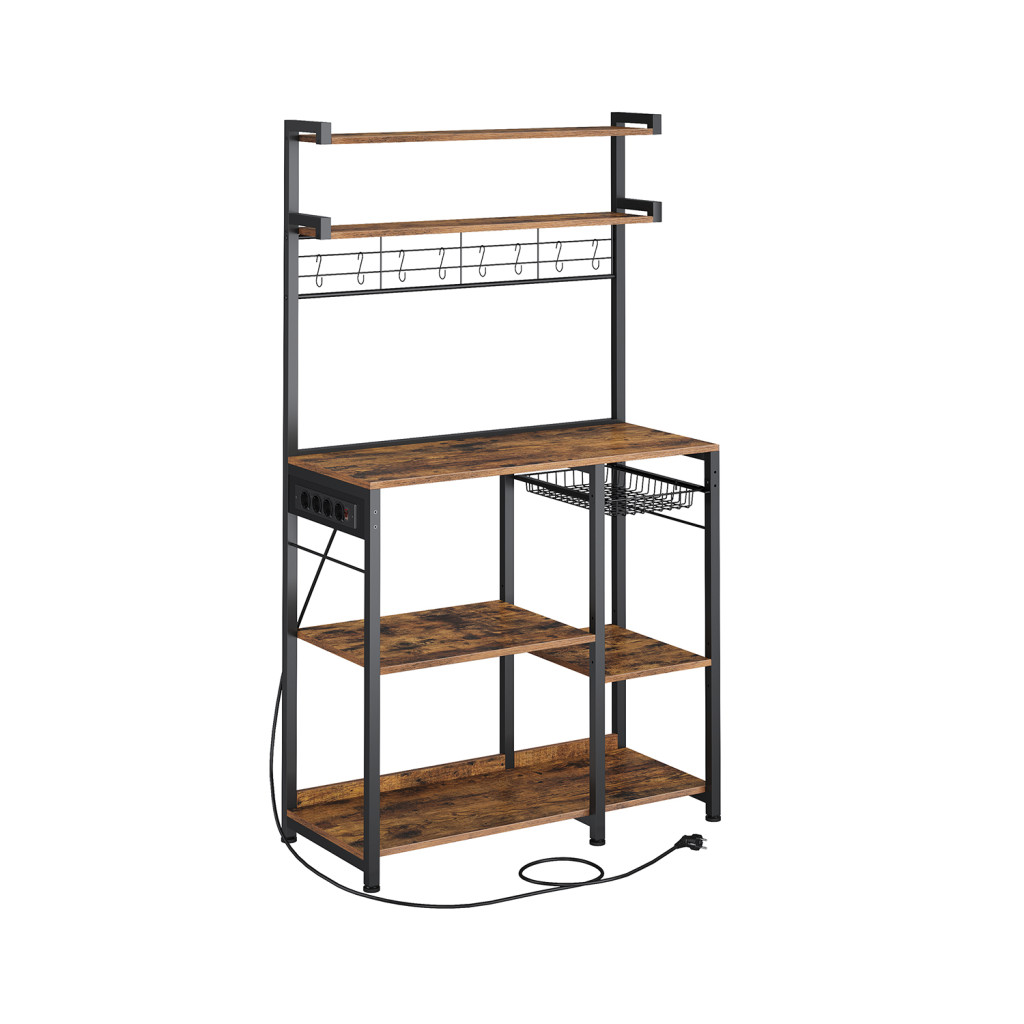 VASAGLE Vintage Konyhai Állvány Konnektorokkal és Tárolókosárral