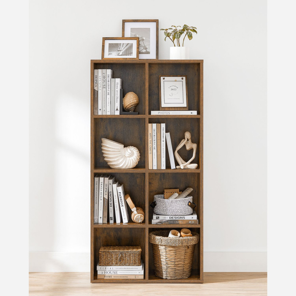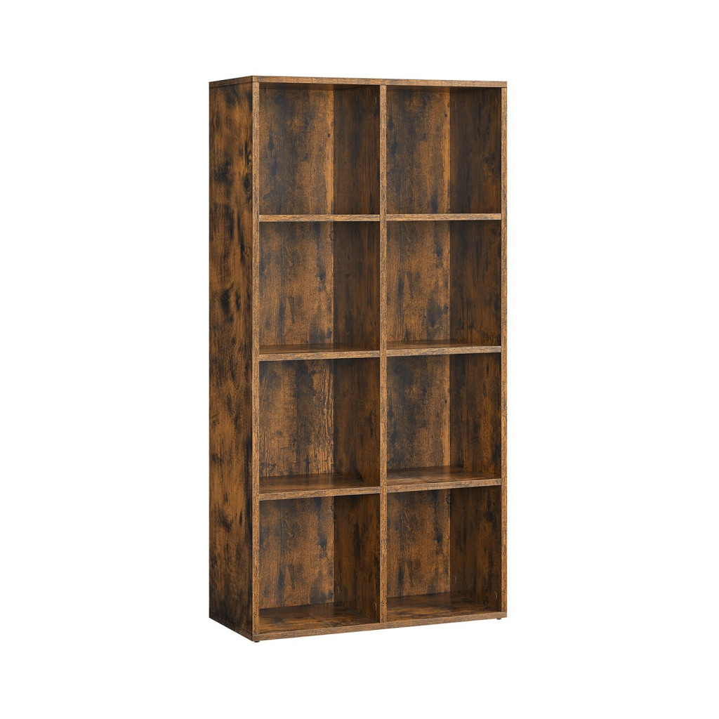 VASAGLE Vintage Könyvespolc 8 Rekeszes Álló Polc Rusztikus Barna