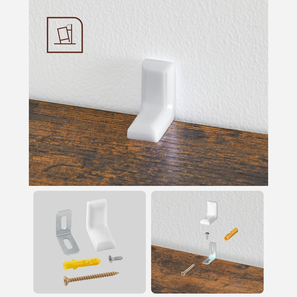 A polc kiváló minőségű forgácslapból készült, stabil szerkezettel és gondosan kidolgozott részletekkel. A beépített dőlésgátló és a megerősített hátlap maximális biztonságot nyújt, míg az eltakart csavarok professzionális megjelenést kölcsönöznek.