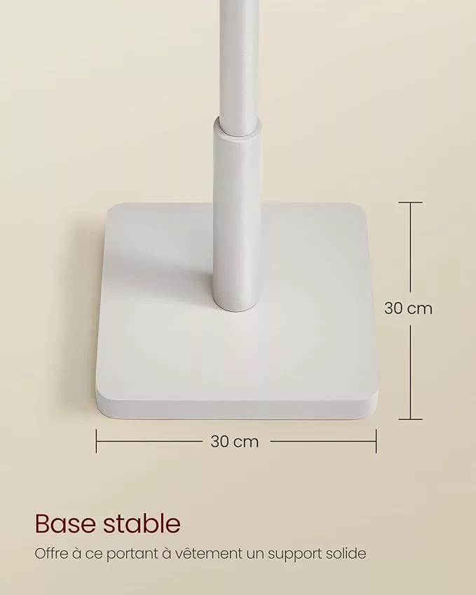 A VASAGLE álló fogas a funkcionalitás és az elegancia tökéletes ötvözete. A minőségi gumifából készült akasztók és központi rúd, valamint az MDF talp biztosítja a tartós használatot. A háromrétegű festékbevonat sima, ruhabarát felületet eredményez, amely megvédi értékes ruhadarabjait. A 30 x 30 cm-es stabil négyzet alakú talp és a 4 cm átmérőjű központi rúd garantálja a stabilitást, akár 24 kg összsúly tárolására is alkalmas.