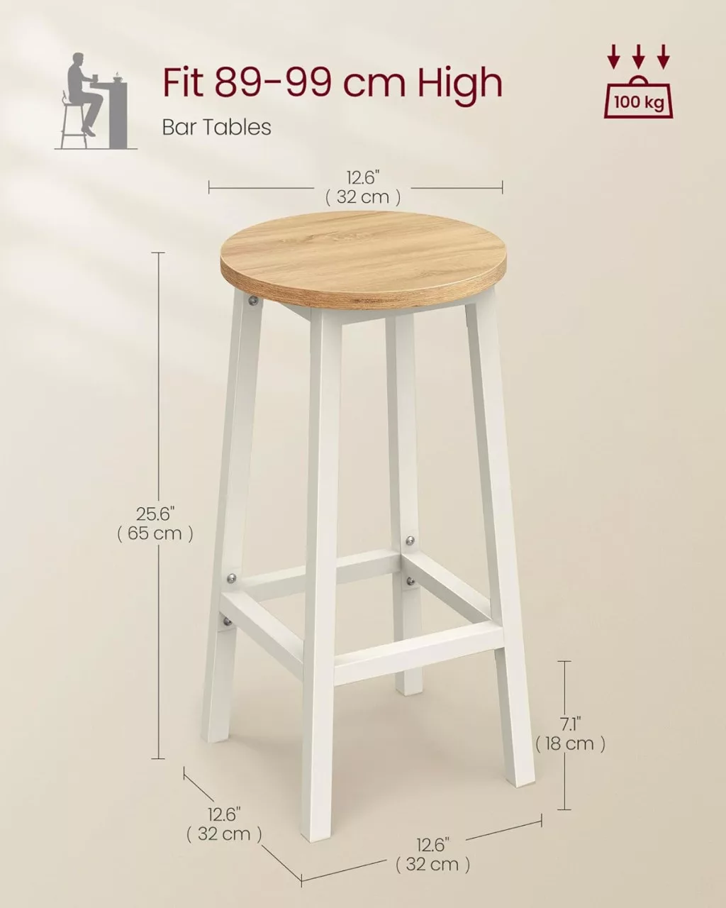 A VASAGLE klasszikus stílusú bárszék szett időtlen eleganciát kölcsönöz konyhájának vagy napplijának. A természetes fa hatású ülőfelület és a strapabíró fehér fém váz tökéletes kombinációja praktikum és design.