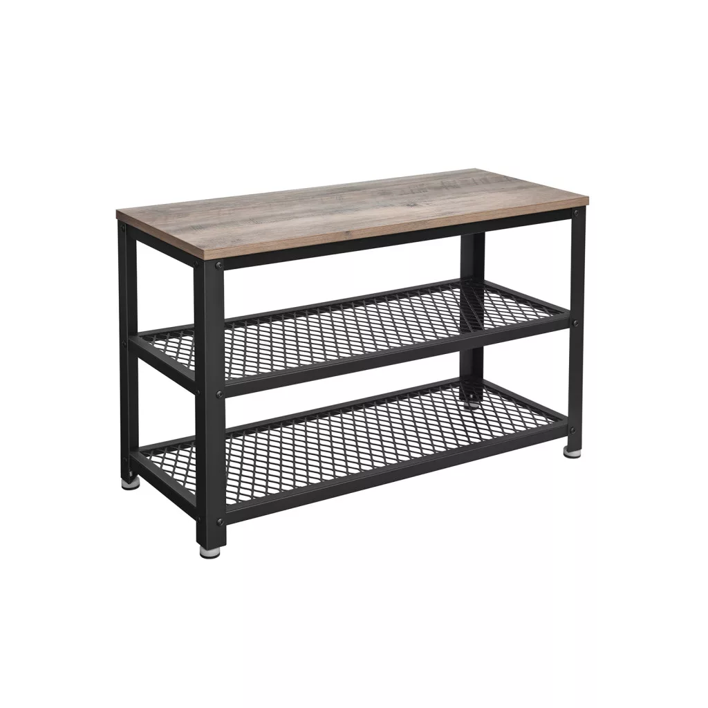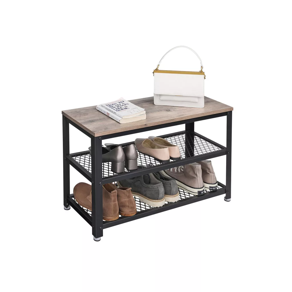 VASAGLE cipős pad 2 polcos cipőtartó ipari stílusú greige és fekete