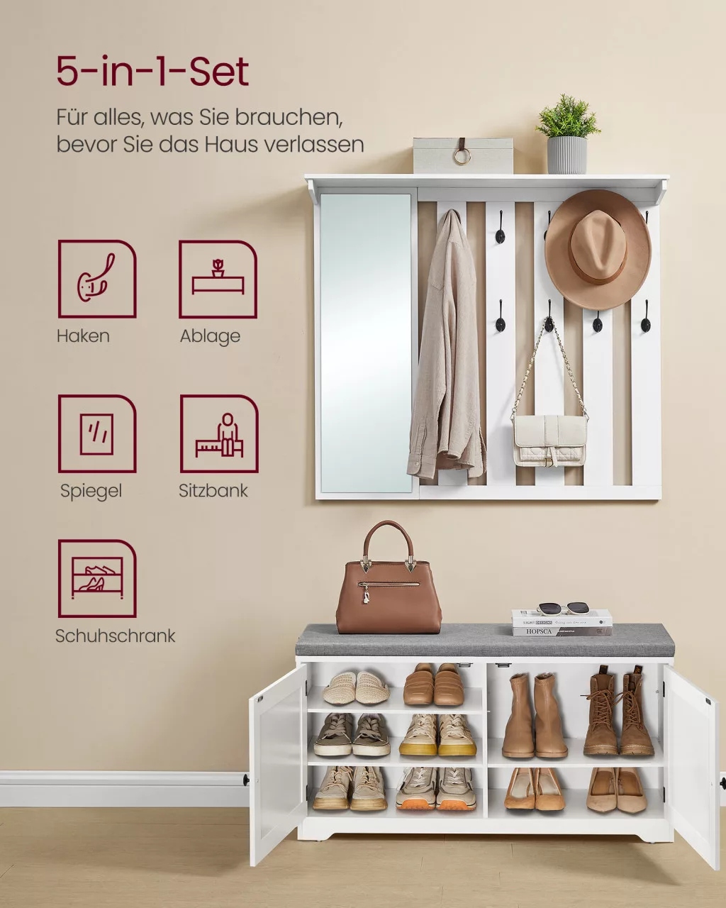 Rendelje meg most a VASAGLE előszoba szettet, és teremtsen otthonában egy stílusos, rendezett fogadóteret!