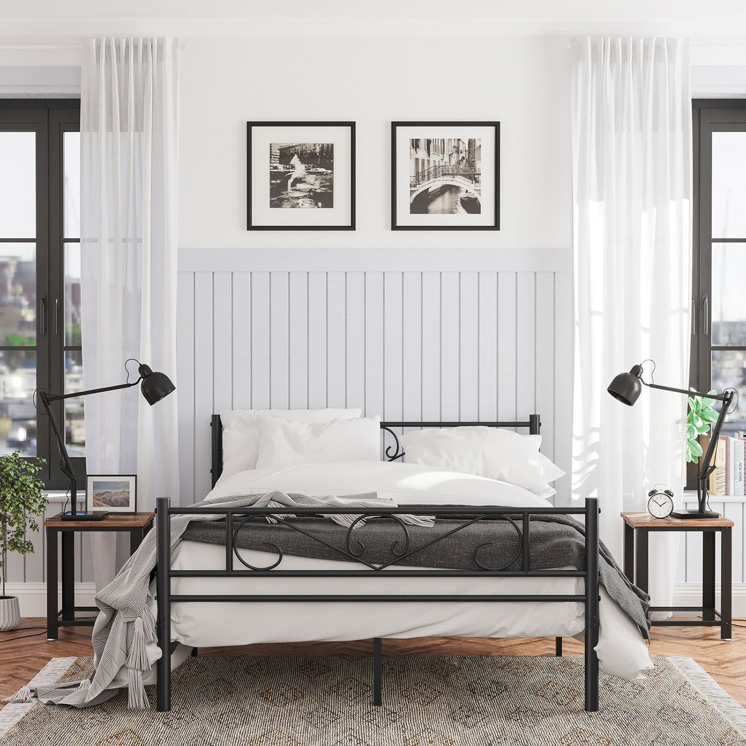 VASAGLE fém ágykeret 140x190 cm matrachoz fekete díszített fejvéggel