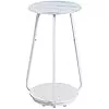 Ez a modern, minimalista stílusú kör alakú asztal tökéletes választás kis helyiségekbe. A márvány fehér edzett üveg asztallappal és 2 szintes tárolóval praktikus megoldást kínál a nappali, hálószoba vagy dolgozószoba számára.
