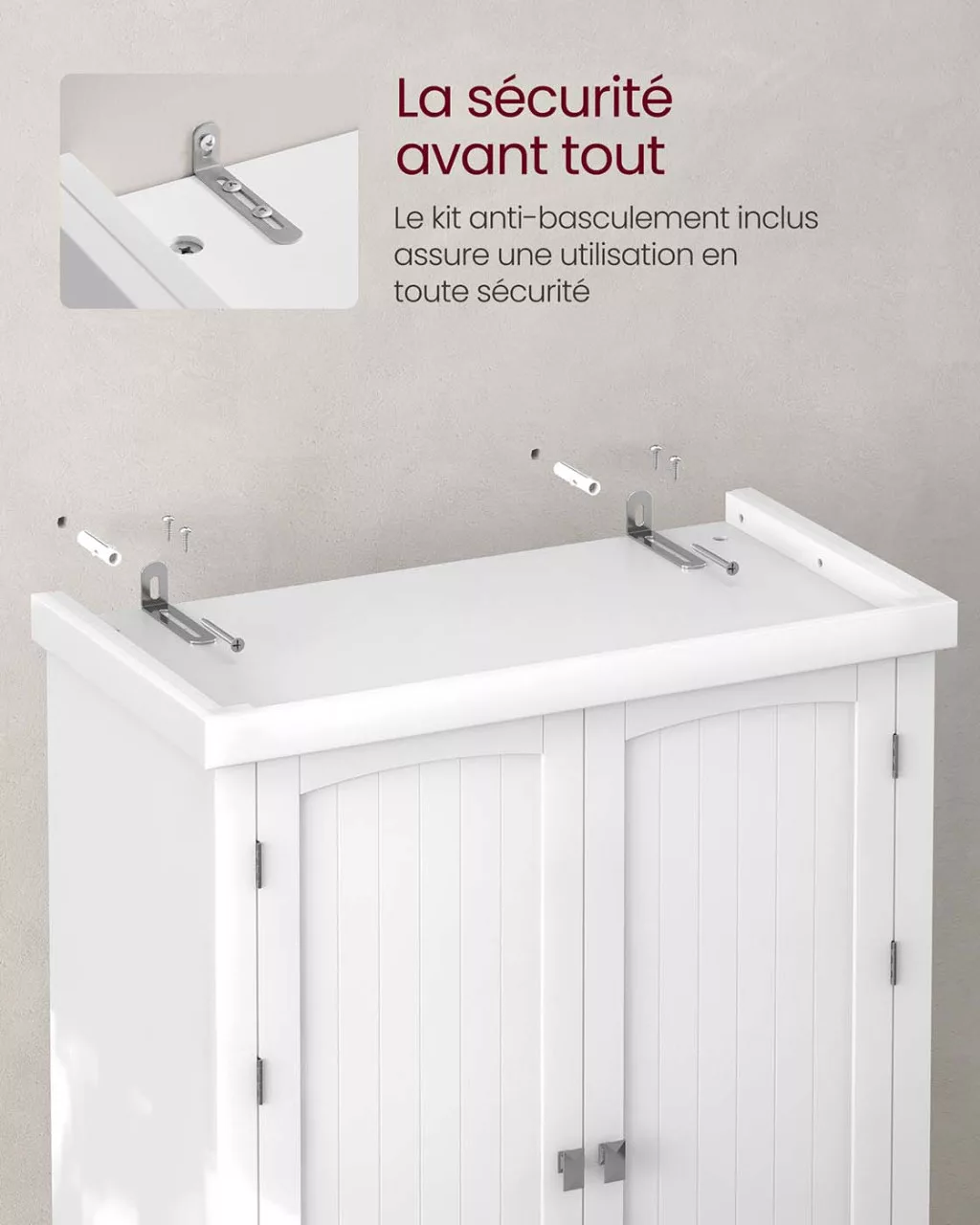 • Stabil és tartós konstrukció: Minőségi MDF anyag és 3 csuklópánt minden felső ajtón biztosítja a hosszú élettartamot, míg a falhoz rögzítő készlet extra biztonságot nyújt