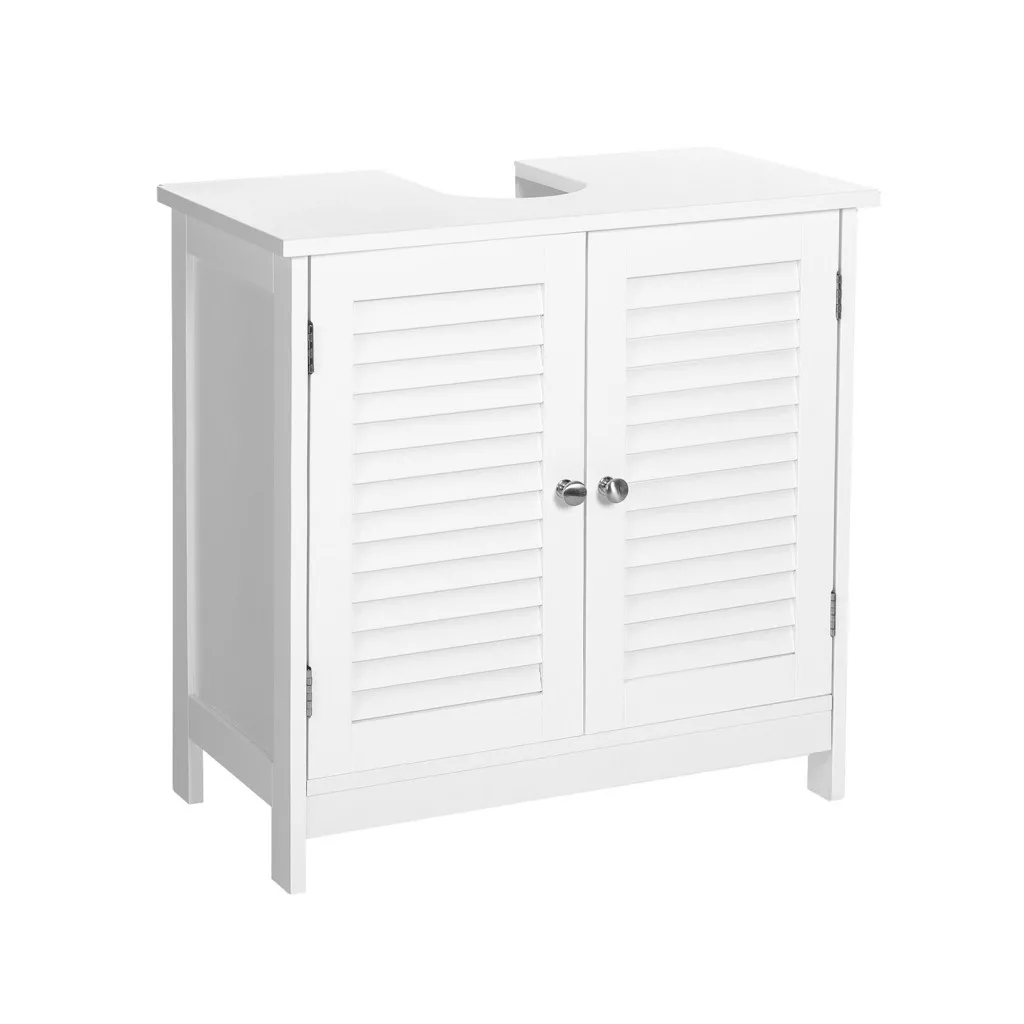A VASAGLE mosdó alatti szekrény tökéletes megoldás a fürdőszobai tárolási problémákra. A matt fehér kivitel és az elegáns redőnyajtók skandináv stílusú tisztaságot és nyugalmat árasztanak, miközben a kiváló minőségű E1 osztályú MDF anyag tartósságot és könnyű tisztíthatóságot biztosít. A 20 x 15 cm-es U-alakú kivágásnak köszönhetően a szekrény tökéletesen illeszkedik a mosdó alá, és helyet ad a vízvezeték csöveknek is.