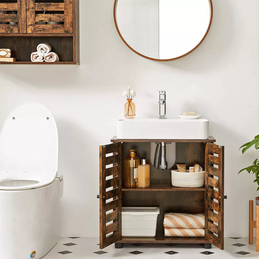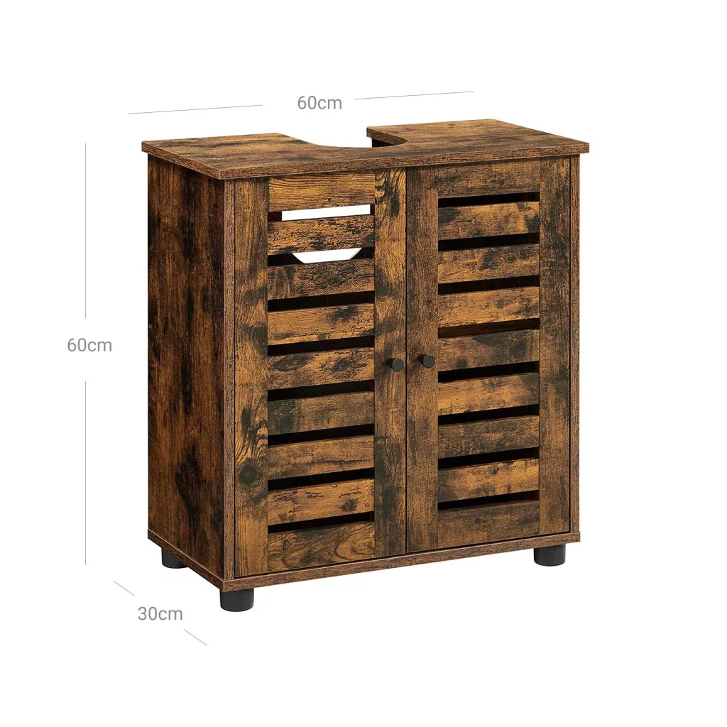 VASAGLE mosdó alatti szekrény rusztikus barna lamellás ajtókkal állítható polccal