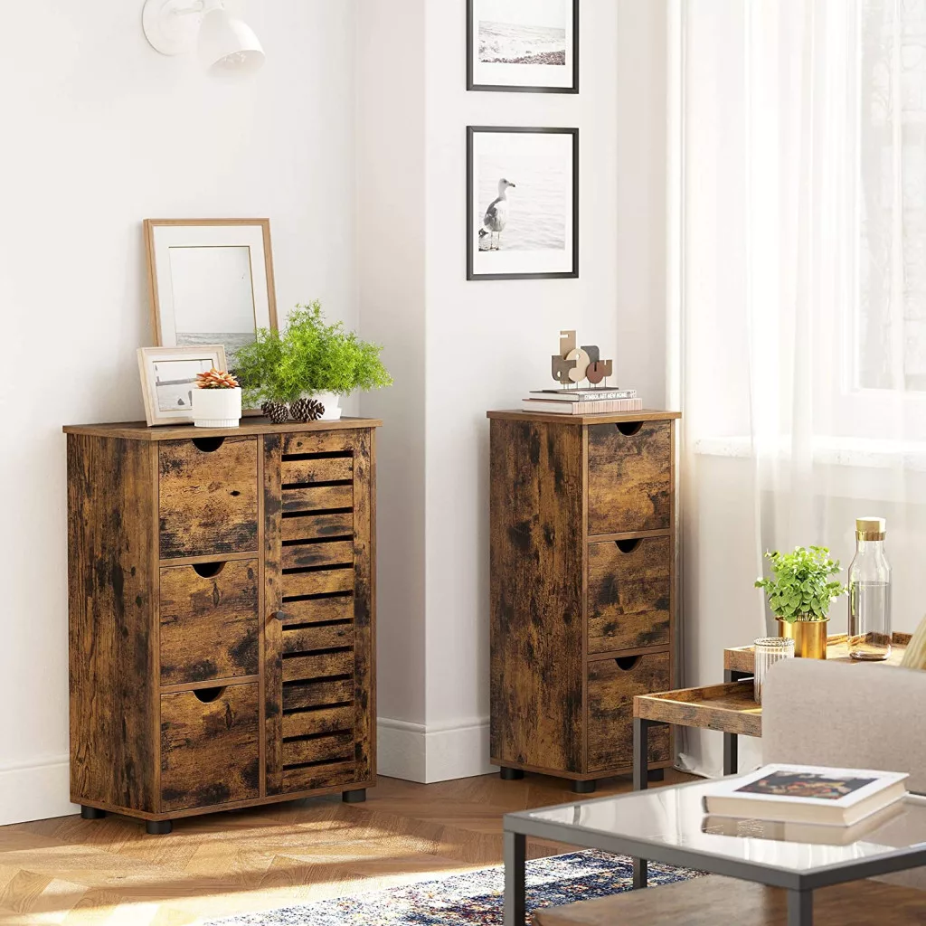 VASAGLE tárolószekrény 3 fiókkal és állítható polcokkal rusztikus barna