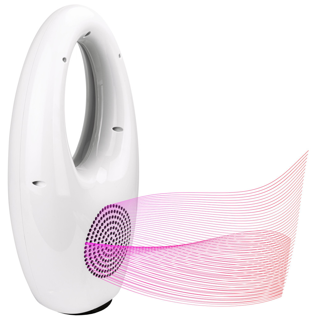 Innovatív lapát nélküli technológiával készült modern ventilátor, amely biztonságos hűtést, 4 színű LED világítást és kényelmes távirányítást kínál.