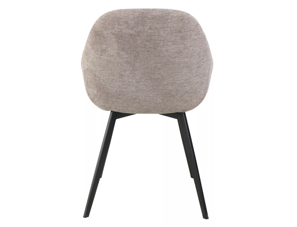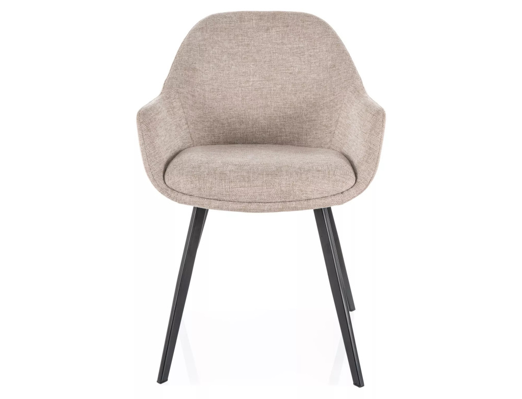 Modern vonalvezetésű, kényelmes étkezőszék bézs Brego szövet kárpitozással és matt fekete fém vázzal, amely tökéletes választás az elegáns étkezőbe.