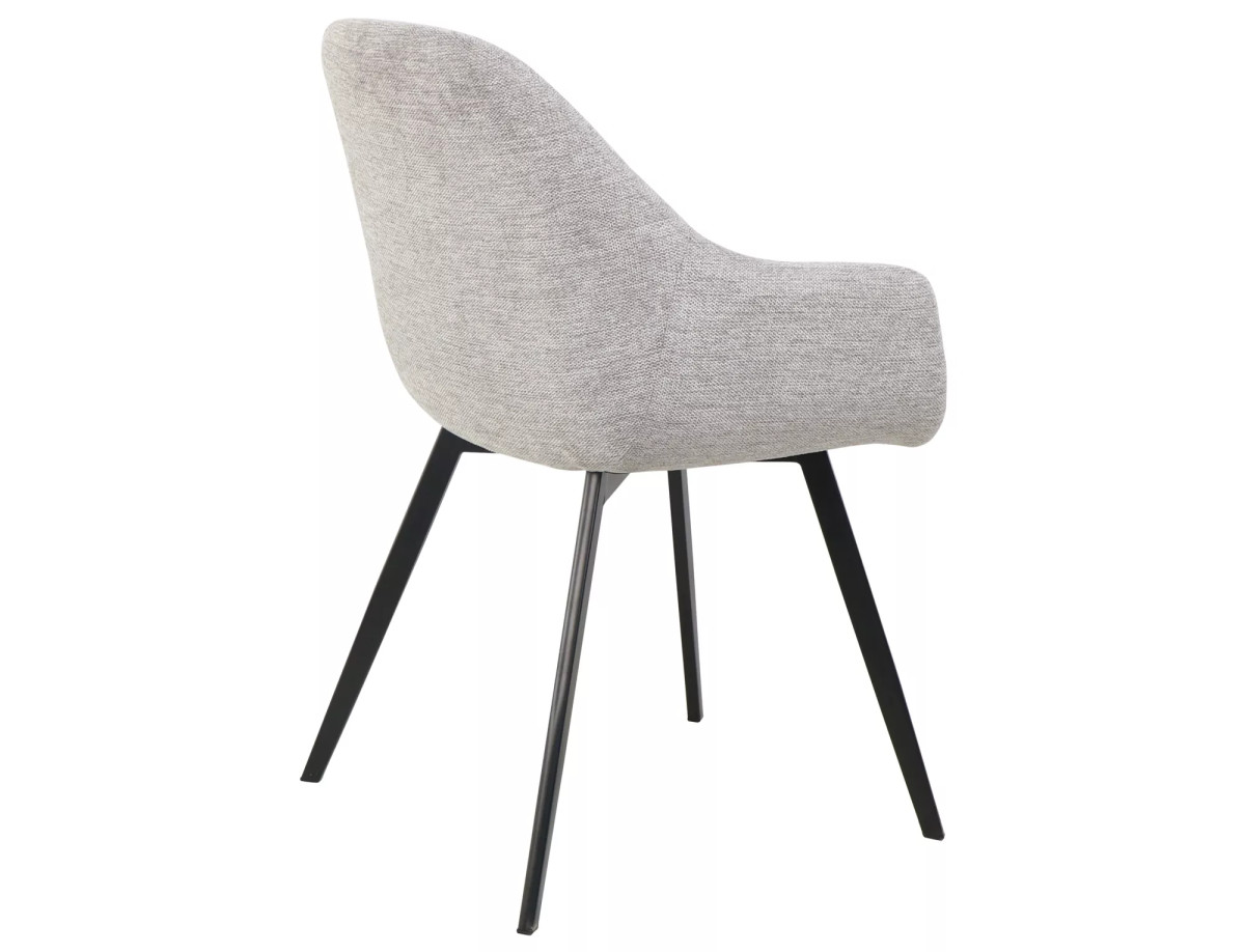 Modern vonalvezetésű, kényelmes étkezőszék szürke Brego szövet kárpitozással és matt fekete fém vázzal, amely tökéletes választás az étkezőbe vagy dolgozószobába.