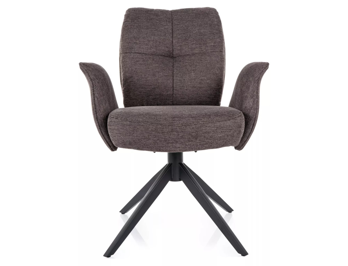 A matt fekete fém váz és a 180 fokos forgási képesség auto-return funkcióval kombinálva praktikus és elegáns megoldást kínál minden étkezőbe. A szék karfái és magas háttámlája további kényelmi elemként szolgálnak.