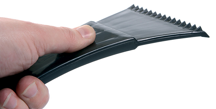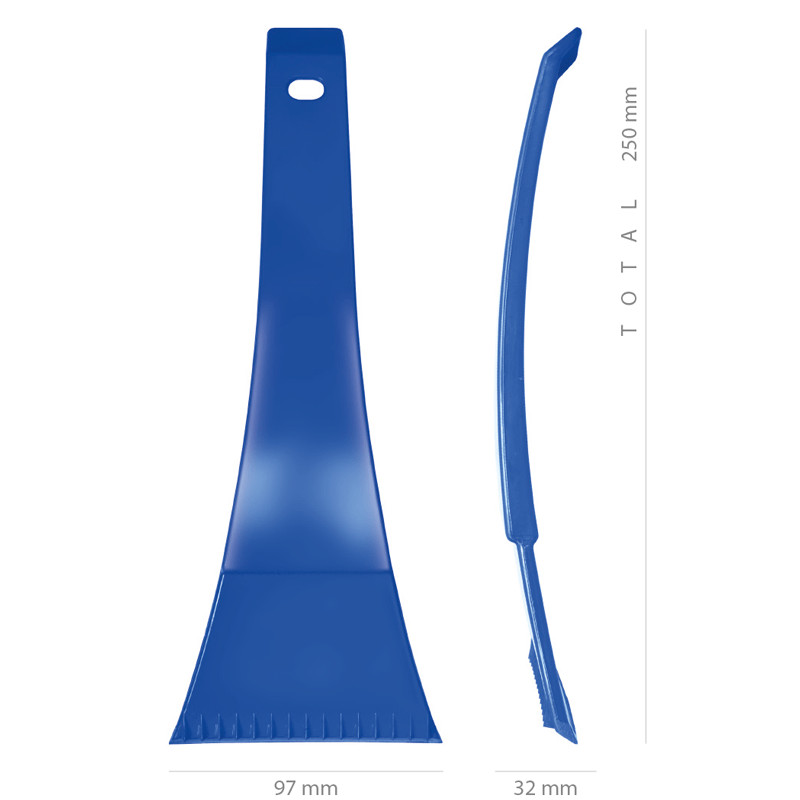 A tartós műanyagból készült eszköz fogása biztonságos, nem csúszik meg használat közben. A speciálisan kialakított fogazott él kíméletesen, mégis hatékonyan távolítja el a jeget és a fagyott havat a szélvédőről.