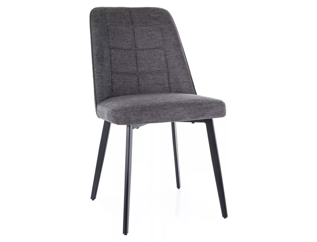 Modern és kényelmes étkező szék Brego szövet kárpitozással és matt fekete fém vázzal. Elegáns megjelenésével és ergonomikus kialakításával tökéletes választás étkezőjébe vagy dolgozószobájába.