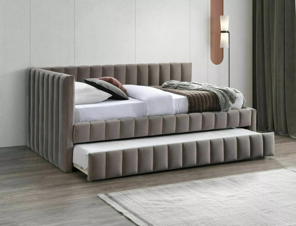 Alfie Velvet Kihúzható Bársony Ágy Sötétbézs Bordázott Kárpitozással