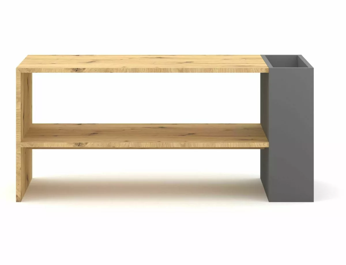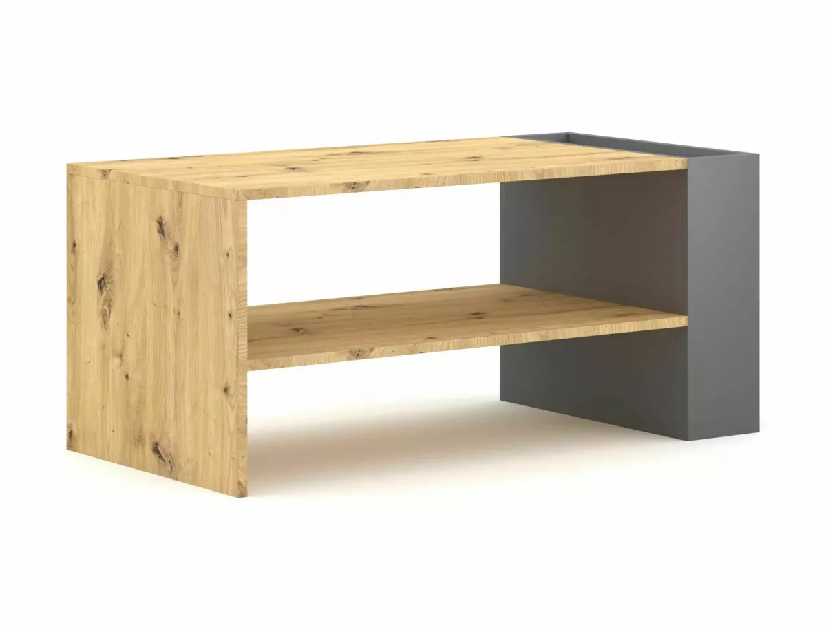 Modern vonalvezetésű dohányzóasztal laminált tölgy és antracit színkombinációban. Praktikus nyitott tárolórésszel rendelkezik, amely tökéletes egyensúlyt teremt a funkcionalitás és az esztétika között.
