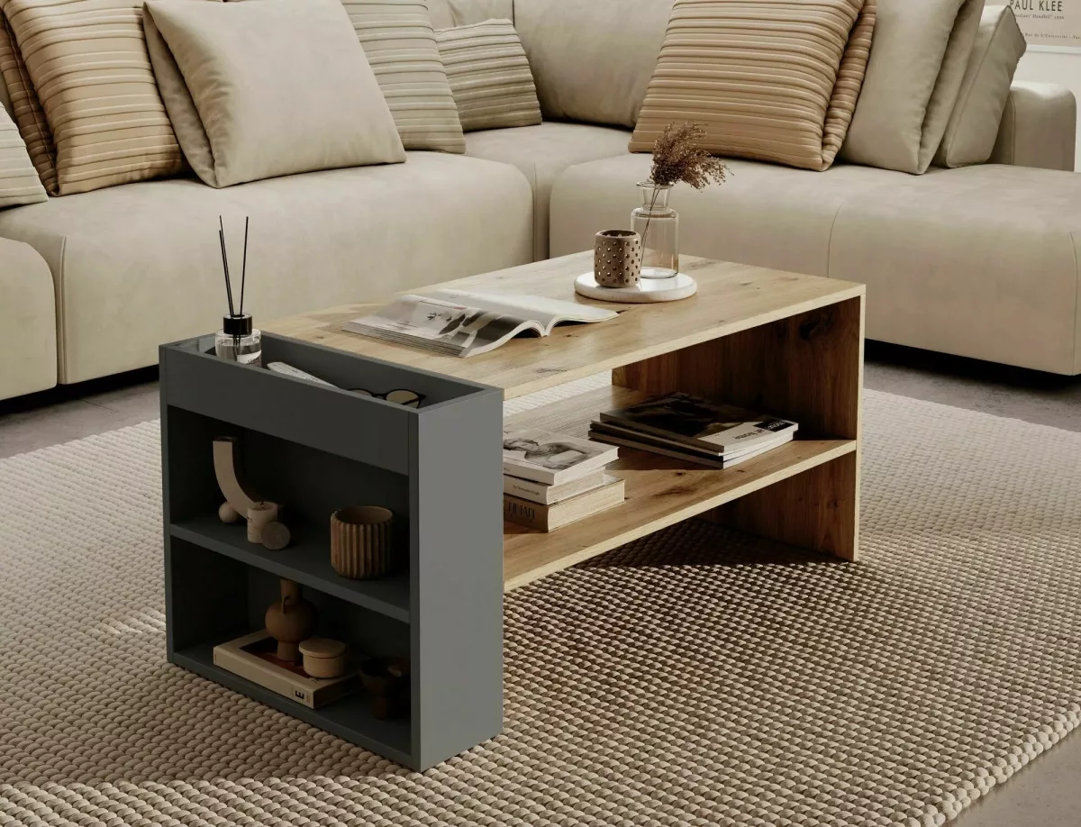 Almond Artisan Laminált Dohányzóasztal Tölgy-Antracit Nyitott Polcos