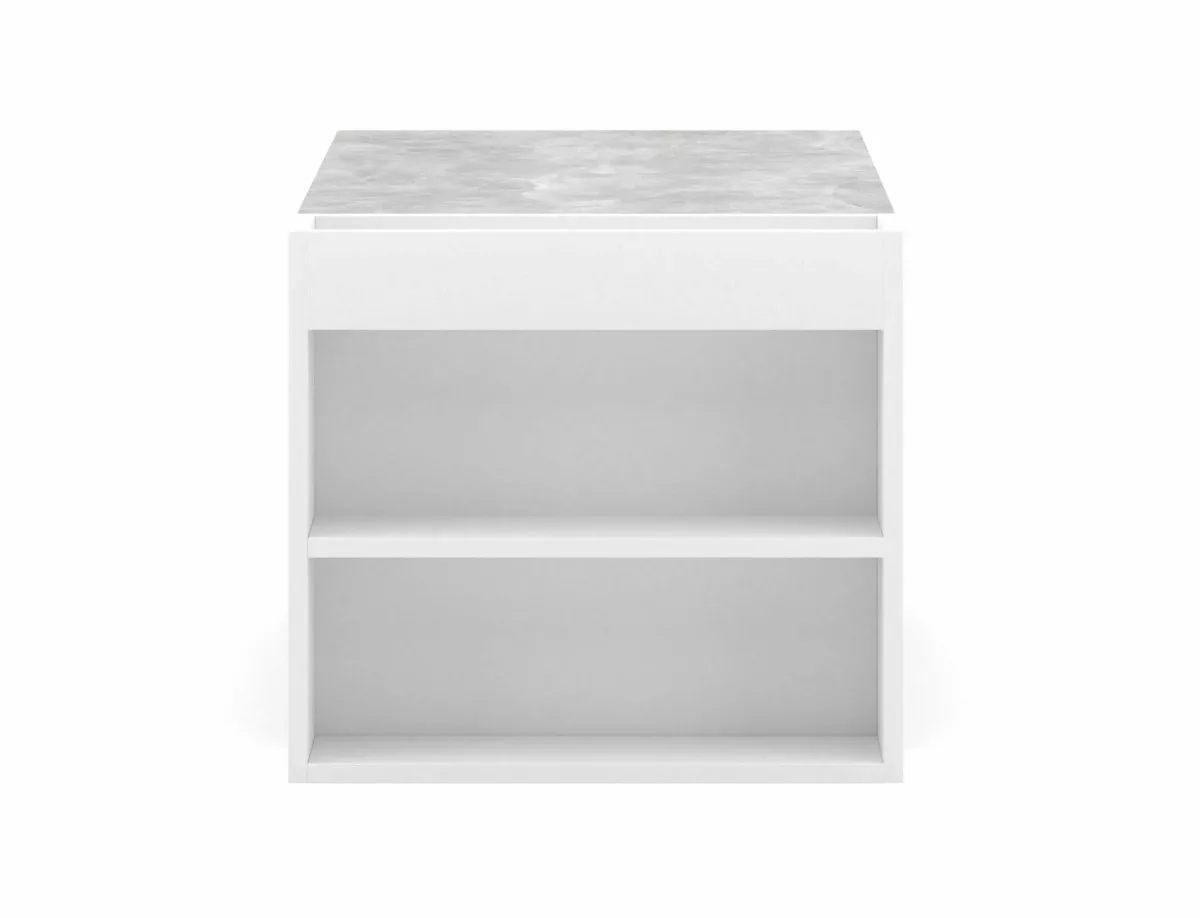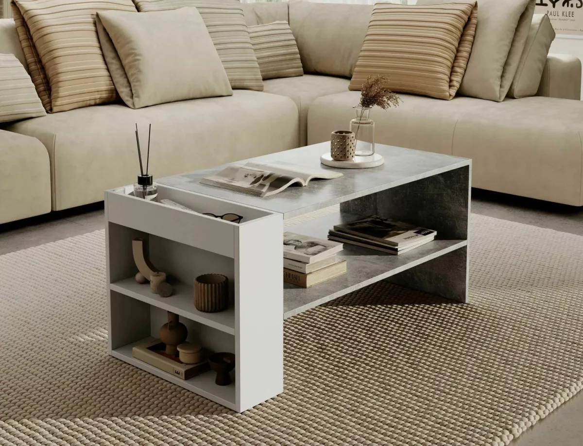 Almond Modern Dohányzóasztal Laminált Beton-Fehér Tárolórekeszekkel