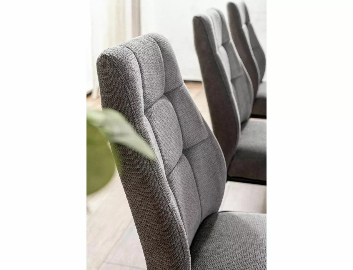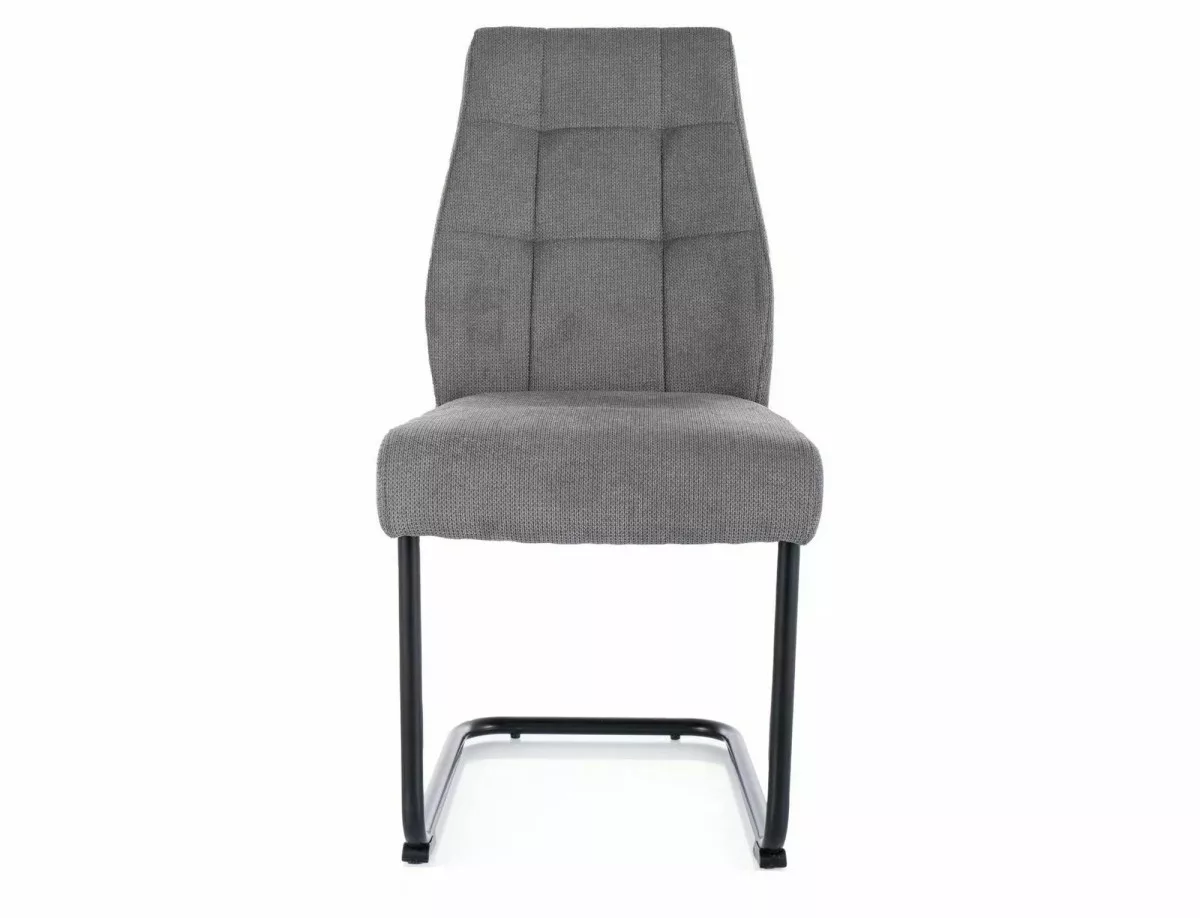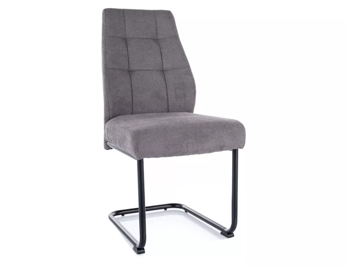 Modern szánkótalpas szék kényelmes zsebrugós üléssel és stílusos steppelt háttámlával. A szürke Vardo szövet kárpitozás és matt fekete fémváz elegáns kombinációja tökéletes választás az étkezőbe.