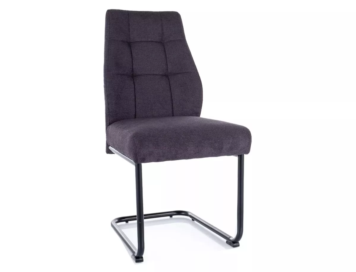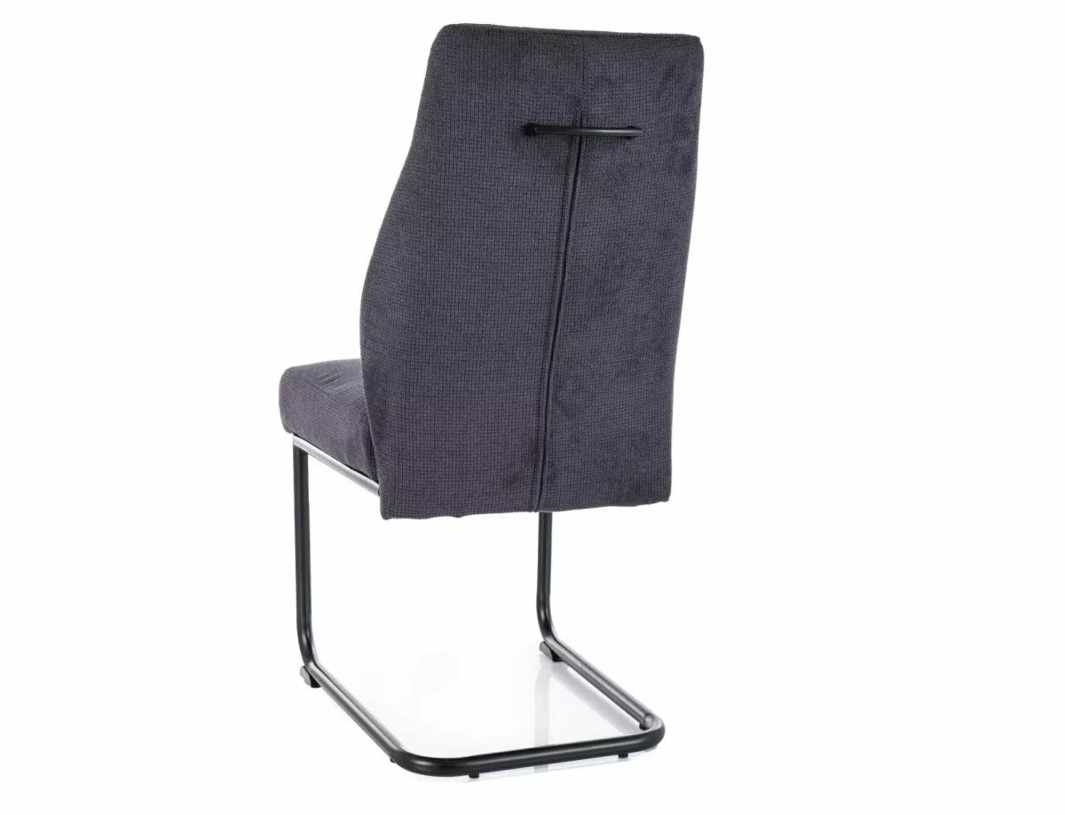 Modern étkezőszék zsebrugós üléssel és ergonomikus háttámlával, Vardo szövet kárpitozással és matt fekete fém vázzal. Kényelmes fogóval a háttámlán a könnyű mozgathatóságért.