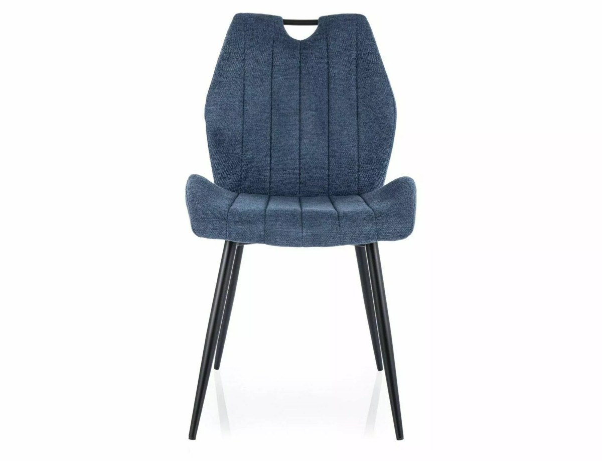 Az Arco Brego étkezőszék a modern design és a kényelem tökéletes ötvözete. A szék elegáns sötétkék Brego szövettel van kárpitozva, amely kellemes tapintású és tartós. A karcsú, matt fekete fém váz stabil alapot biztosít, miközben légies megjelenést kölcsönöz a széknek. A háttámla különleges, barázdált kialakítása nem csak esztétikai elem, hanem ergonomikus támaszt is nyújt.