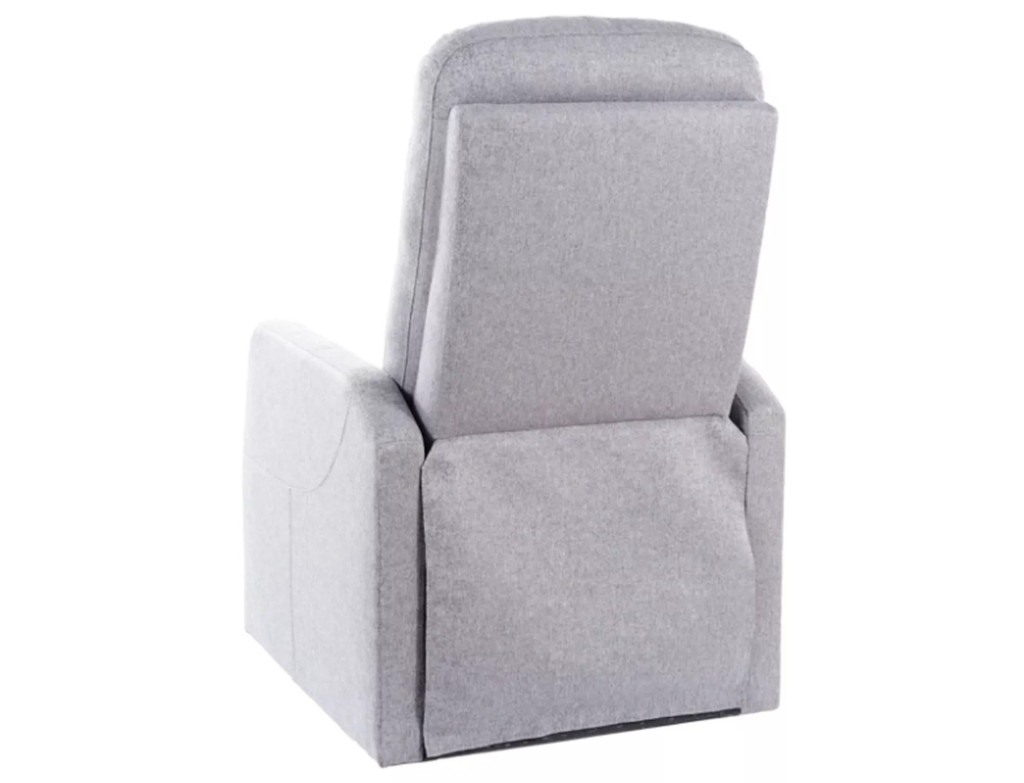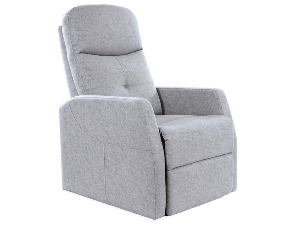 Modern, kihúzható relaxációs fotel kiváló minőségű szürke szövet kárpitozással. Tökéletes választás a mindennapi pihenéshez és relaxációhoz, 120 kg teherbírással.