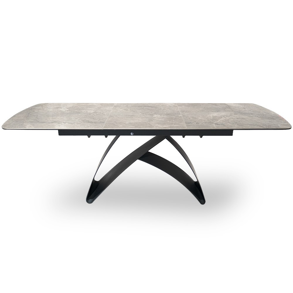 A Bentley kinyitható étkezőasztal a modern design és a praktikus funkcionalitás tökéletes ötvözete. A 6 mm vastag kerámia és üveg kombináció különleges, kőhatású felületet eredményez, míg az egyedi, íves acél lábszerkezet művészi megjelenést kölcsönöz. Az asztal 160 cm-ről 220 cm-re bővíthető, így rugalmasan alkalmazkodik az Ön igényeihez.