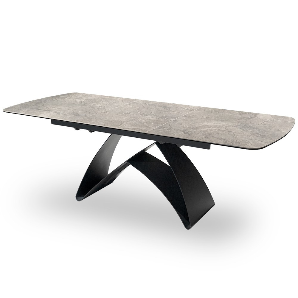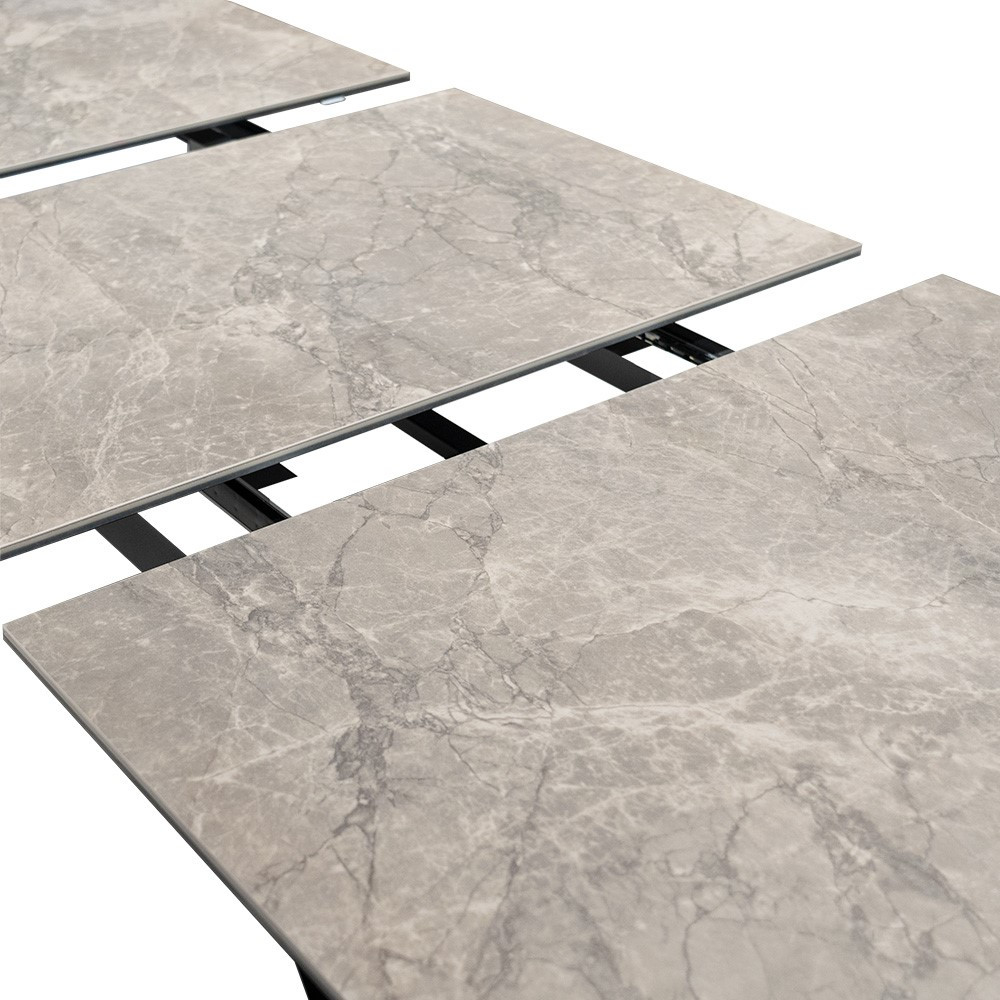 Bentley Kinyitható Kerámia Étkezőasztal Szürke Kő Fekete Lábbal