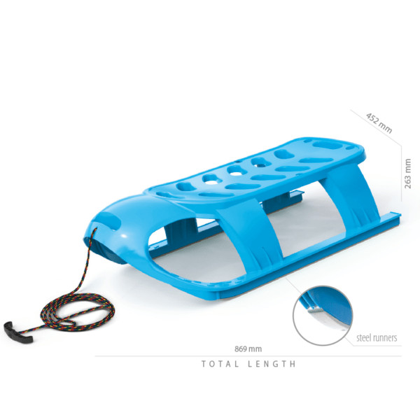 Az acél talpak kiváló csúszási tulajdonságokat biztosítanak, a beépített húzókötél pedig megkönnyíti a szánkó szállítását. Az ergonomikus kialakítás és a megerősített műanyag váz hosszú évekig tartó használatot garantál.