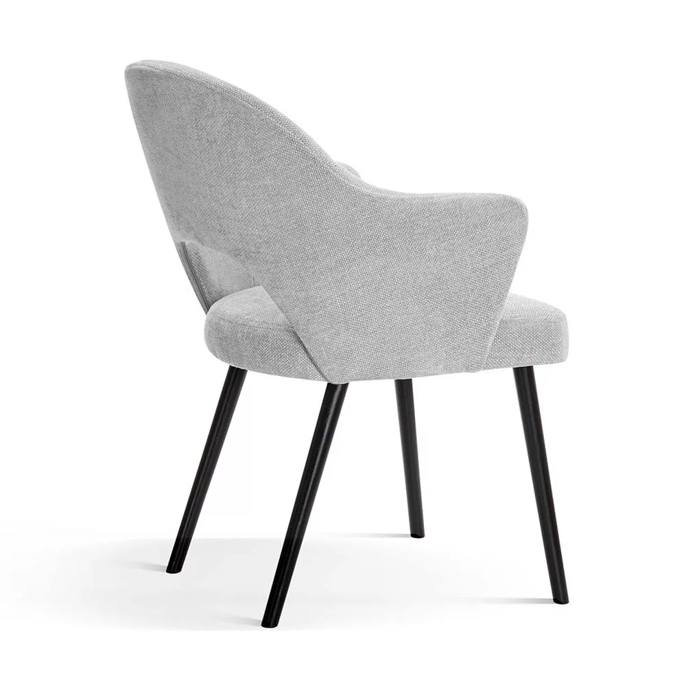 A BJORG kárpitozott szék elegáns és modern kialakítású, kényelmes karfával ellátott ülőbútor. A puha párnázás és az ergonomikus kialakítás hosszan tartó kényelmet biztosít, míg a sötét lábak és a világosszürke kárpitozás tökéletes összhangot teremt.