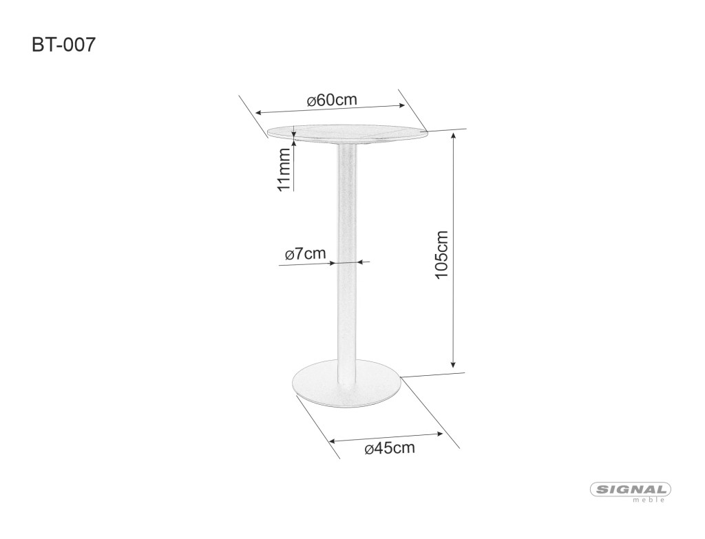 A BT007 bárasztal egy kifinomult darab, amely tökéletesen ötvözi a funkcionalitást és a stílust. A 60 cm átmérőjű kerek kerámia asztallap matt fekete kivitelben készült, amely elegáns megjelenést kölcsönöz. A 105 cm magas, stabil fém váz szintén matt fekete színben harmonikusan illeszkedik az asztallaphoz. Az asztal négy személy kényelmes elhelyezését teszi lehetővé.