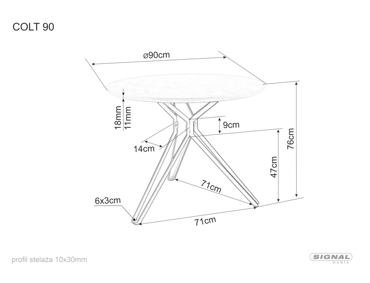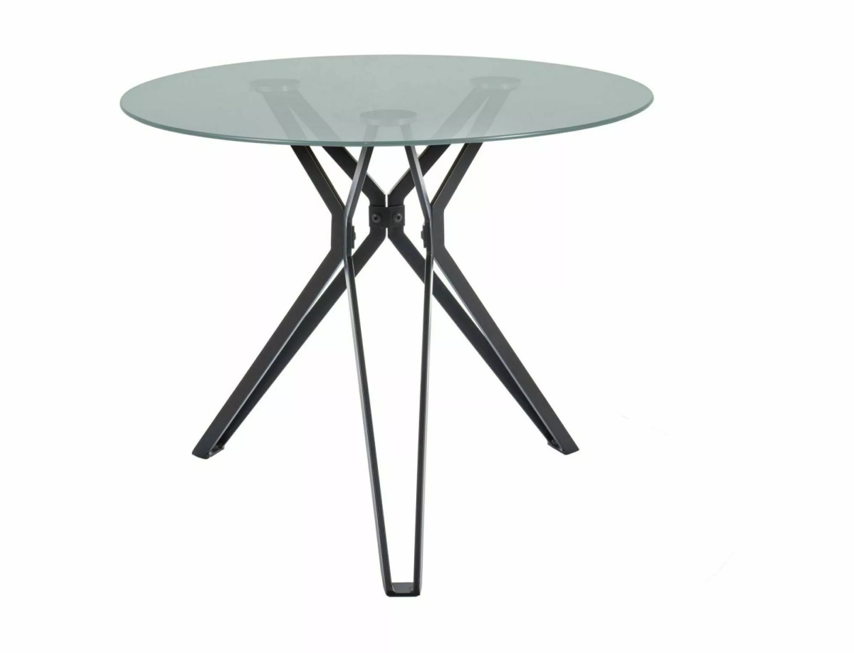 A Colt étkezőasztal egy modern és stílusos bútordarab, amely tökéletesen ötvözi az edzett üveg és a matt fekete fém elemeket. A 90 cm átmérőjű kerek asztallap átlátszó edzett üvegből készült, amely könnyedséget és légies megjelenést kölcsönöz a darabnak. A különleges, geometrikus kialakítású váz matt fekete színű fémből készült, amely stabil alapot biztosít és egyedi megjelenést kölcsönöz az asztalnak.